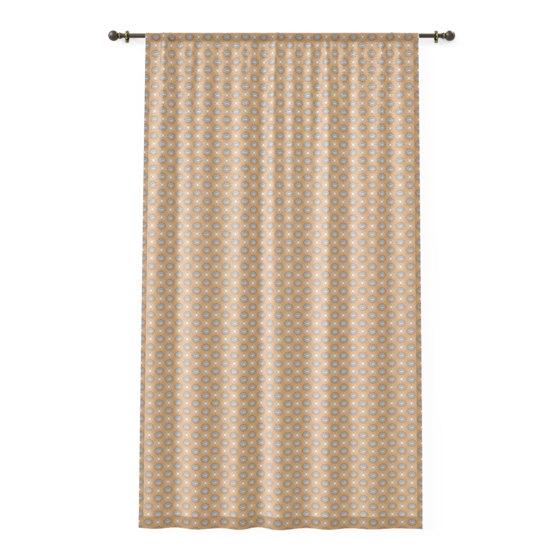 Tan Sunset Star-crossed Bodies Sheer Window Curtain, 50" x 84", partially transparent