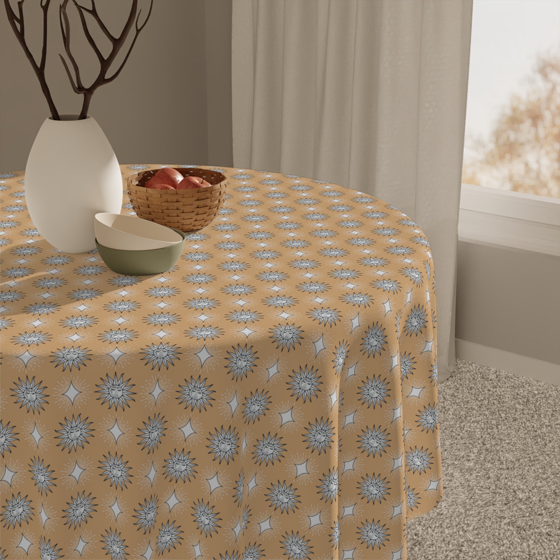 Tan Sunset Star-crossed Bodies Tablecloth, 55" x 55"