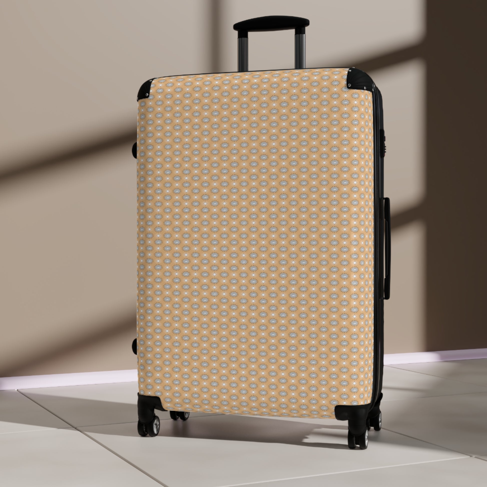 Tan Sunset Star-crossed Bodieses Large Suitcase with built in lock, 4 double-wheels, telescopic handle, and ABS back hard-shell
