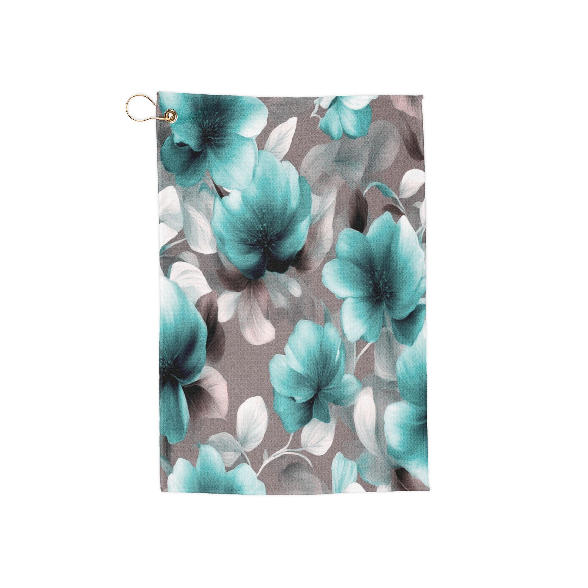 Tif Green Gray Floral Bunch Golf Towel, 16" x 24"