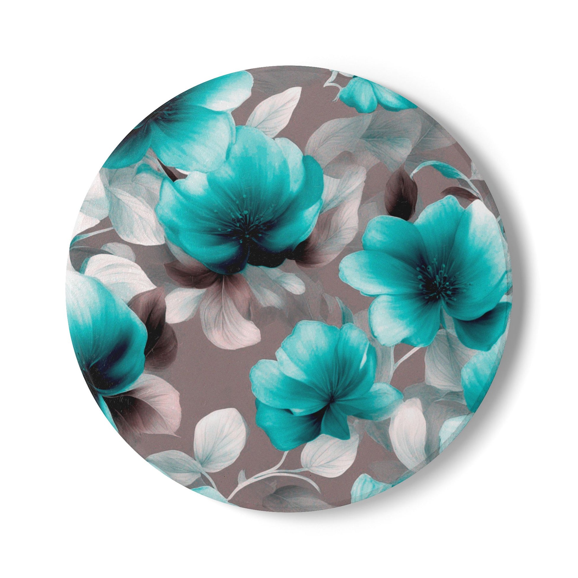 Tif Green Gray Floral Bunch Round Ceramic Coaster, 4" x 4"
