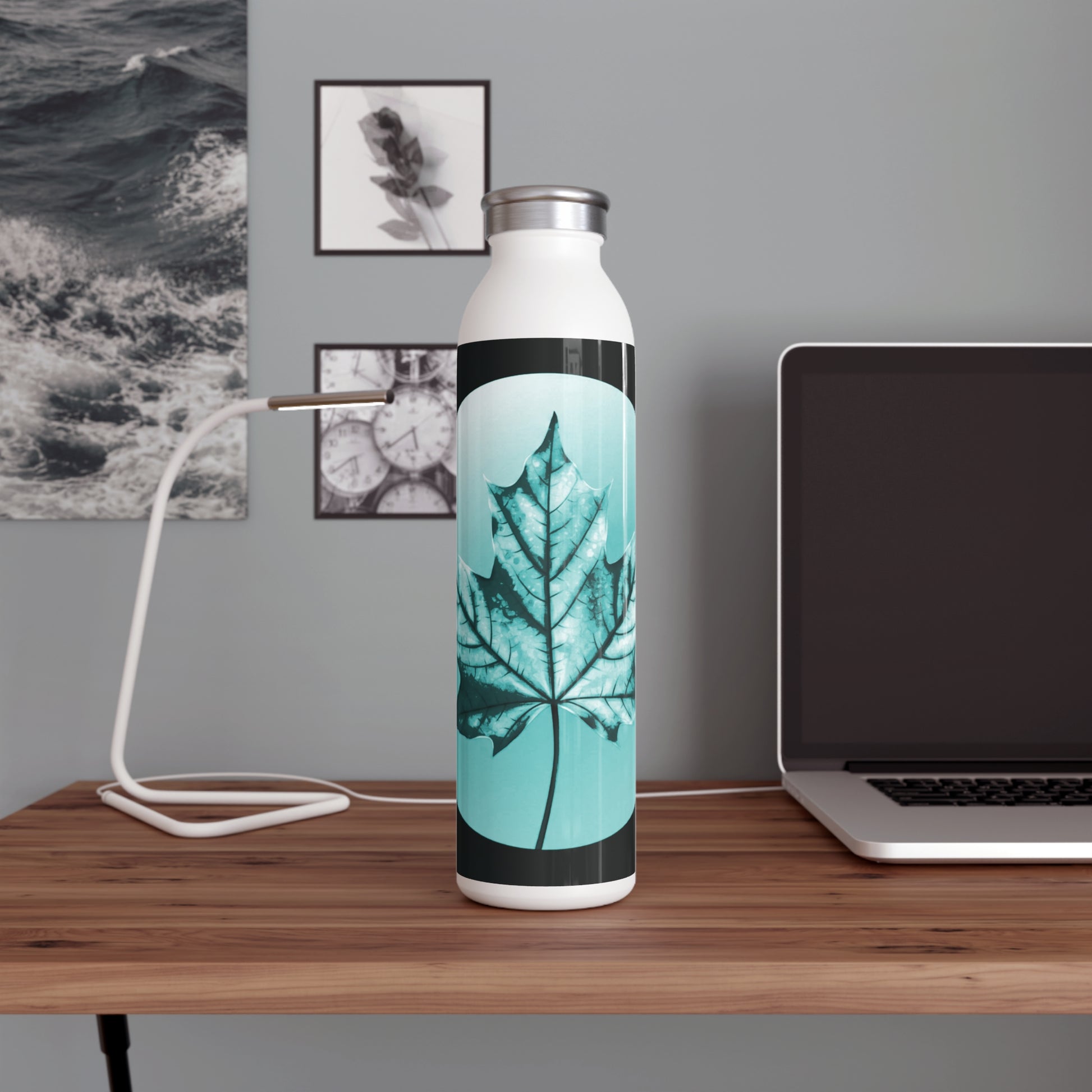 Tif Green Maple Leaf Slim Water Bottle, 20 oz White