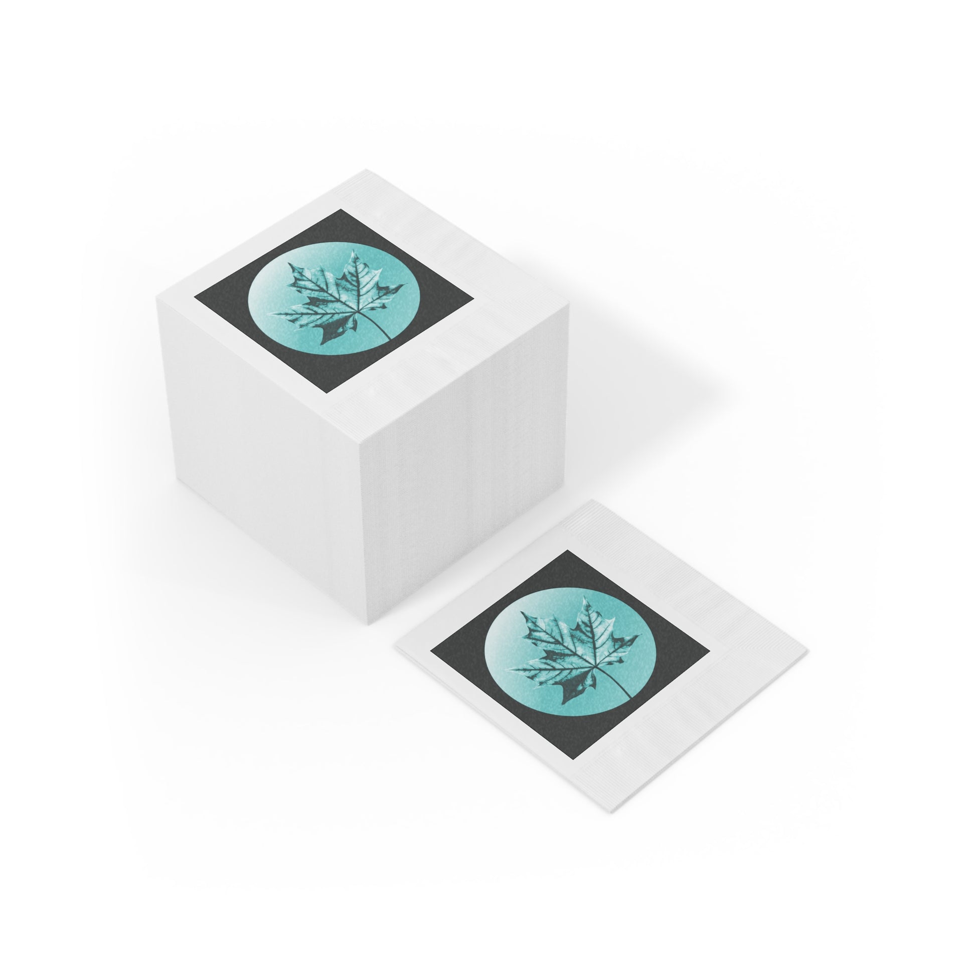 Tif Green Maple Leaf White Coined Napkins, 6.5" x 6.5"