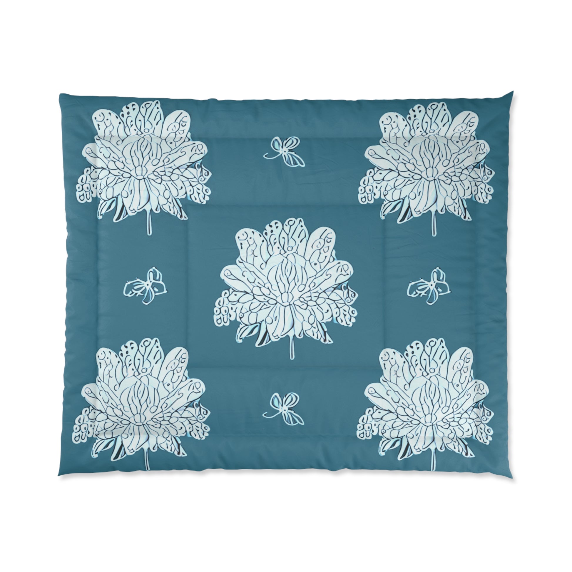 Tif Green White Floral Butterflies 104" × 88" Comforter