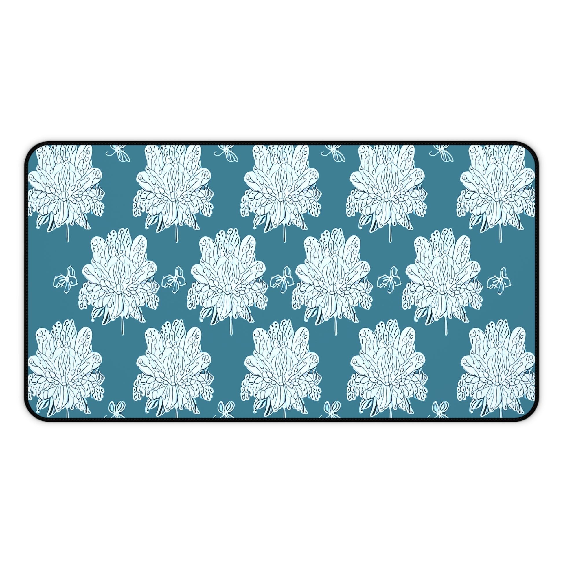 Tif Green White Floral Butterflies 12" x 22" Desk Mat