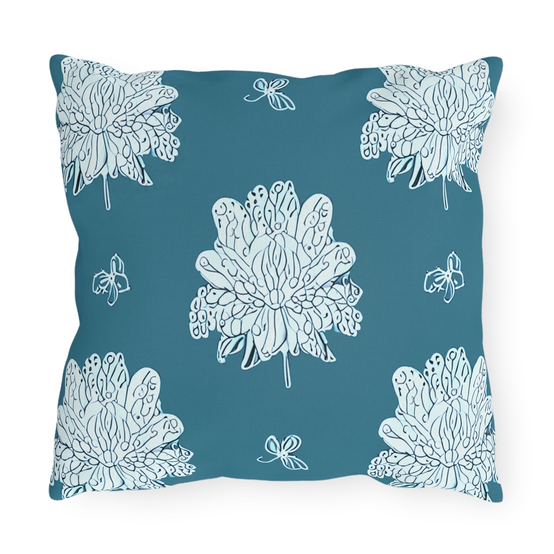Tif Green White Floral Butterflies 16" x 16" Outdoor Pillows