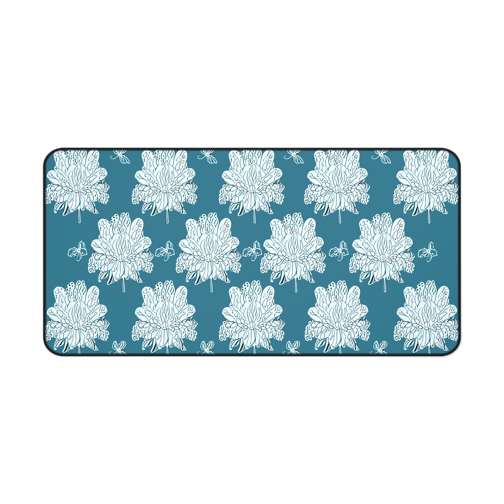 Tif Green White Floral Butterflies 16" x 32" Desk Mat