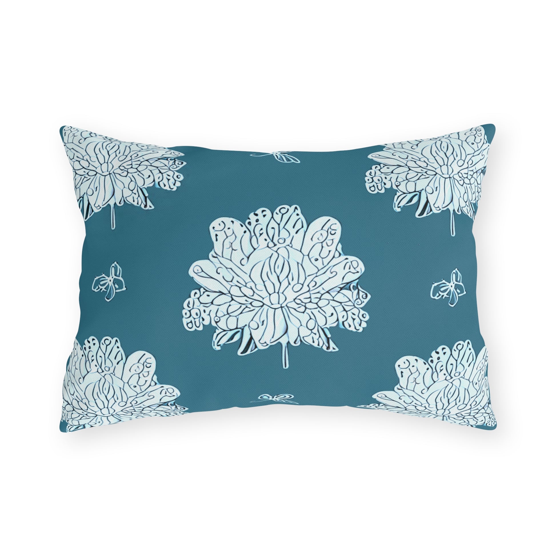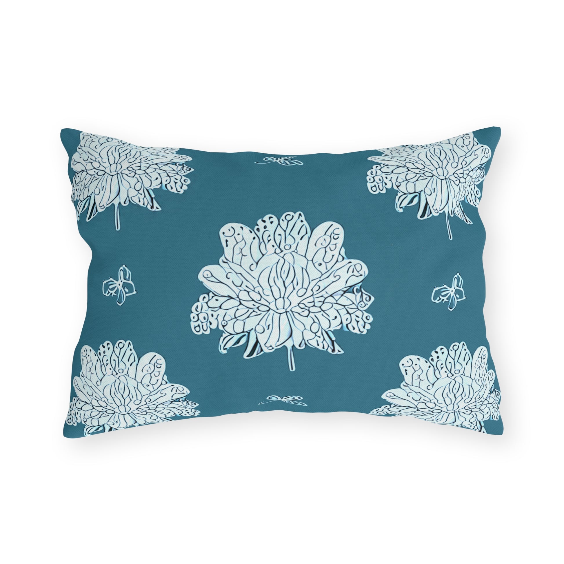 Tif Green White Floral Butterflies 20" x 14" Outdoor Pillow