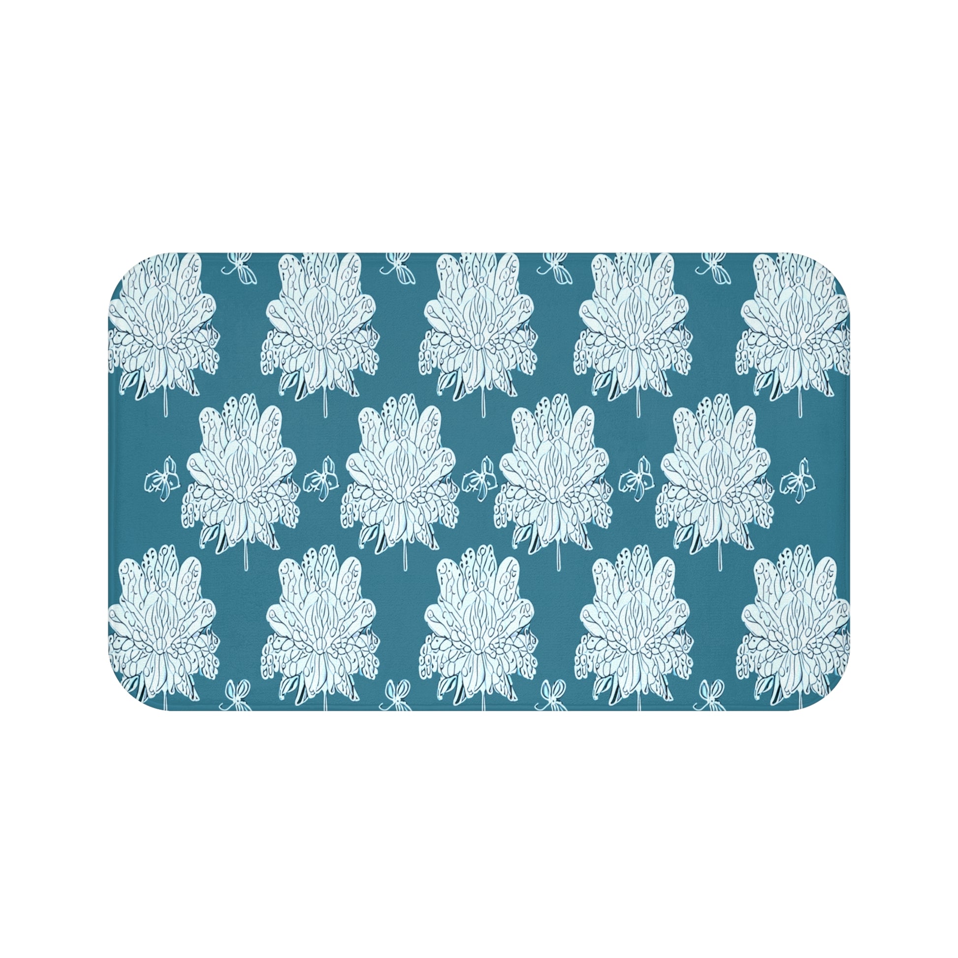 Tif Green White Floral Butterflies 34" x 21" Bath Mat
