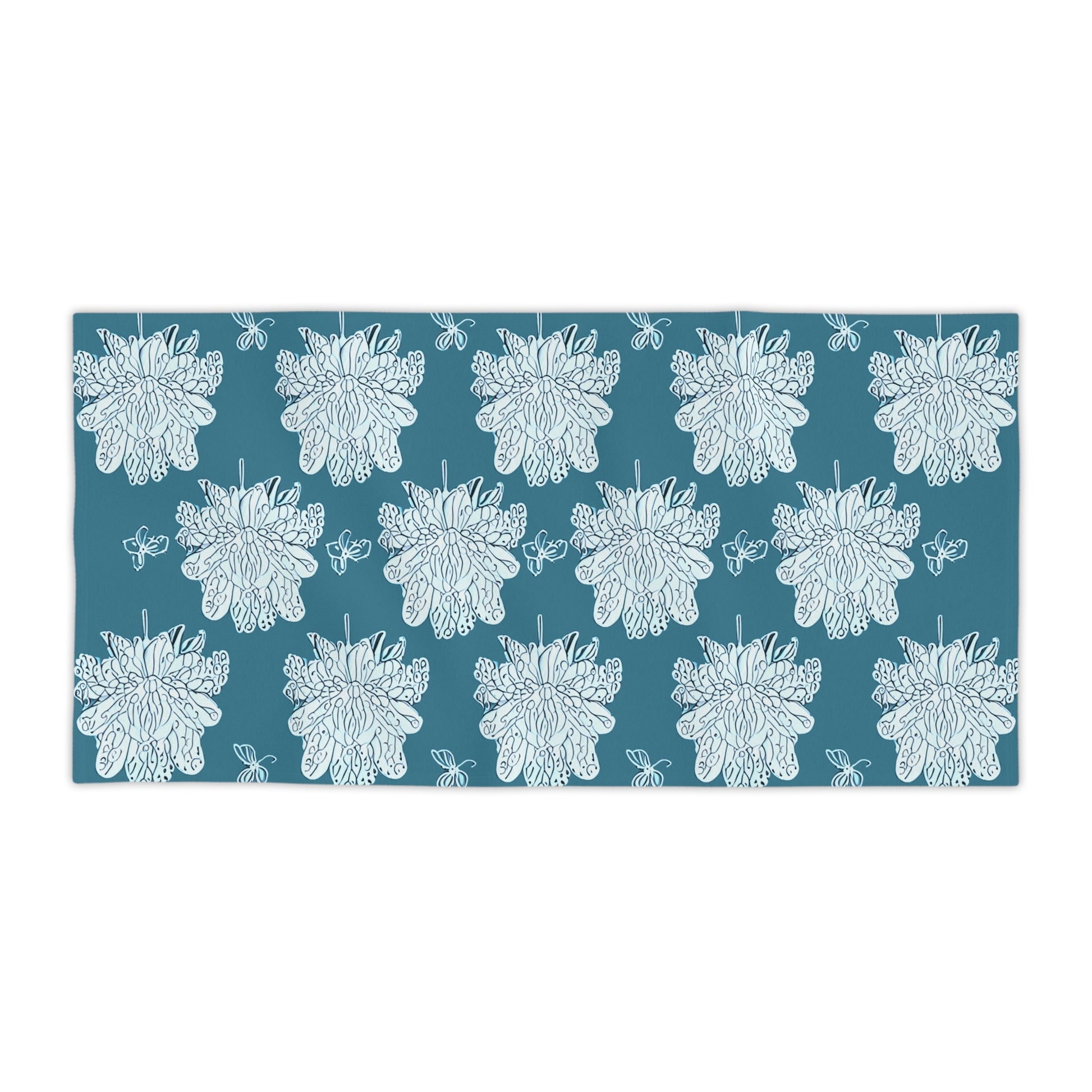 Tif Green White Floral Butterflies Beach Towel, 30" x 60"