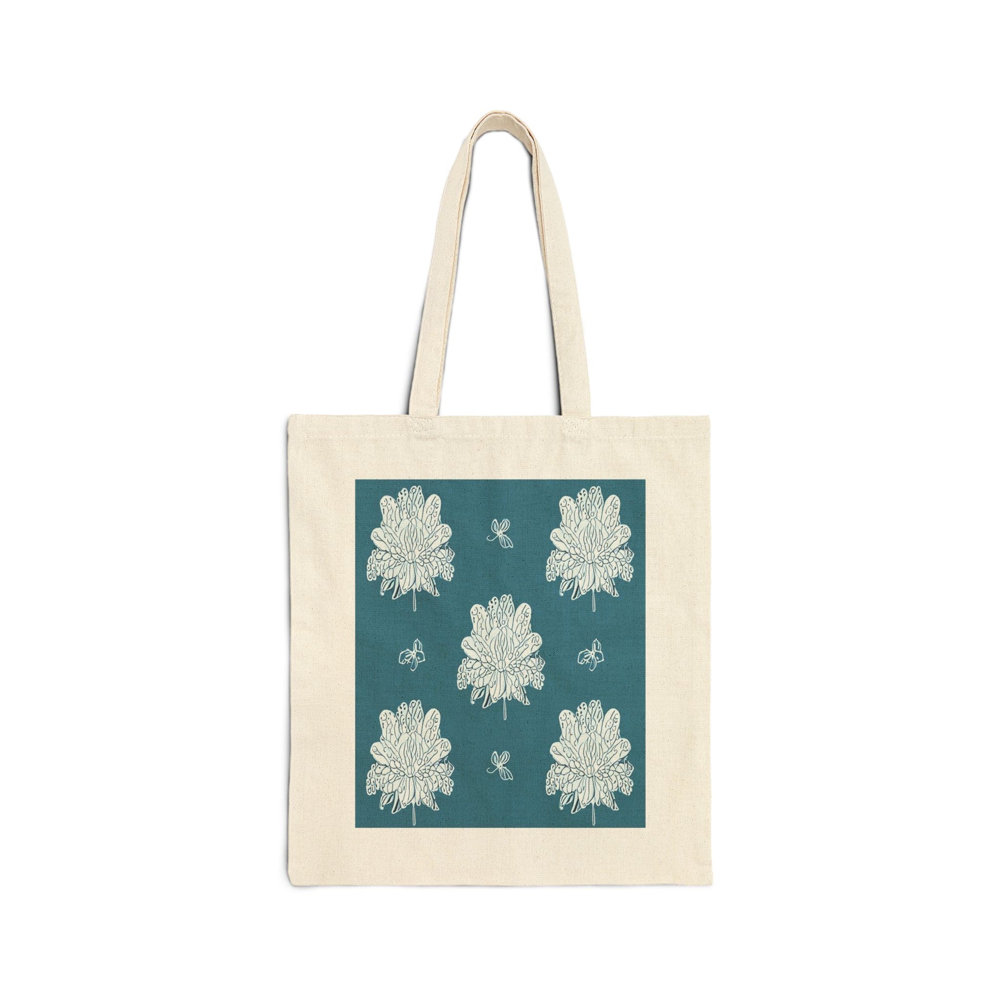 Tif Green White Floral Butterflies Cotton Canvas Tote Bag