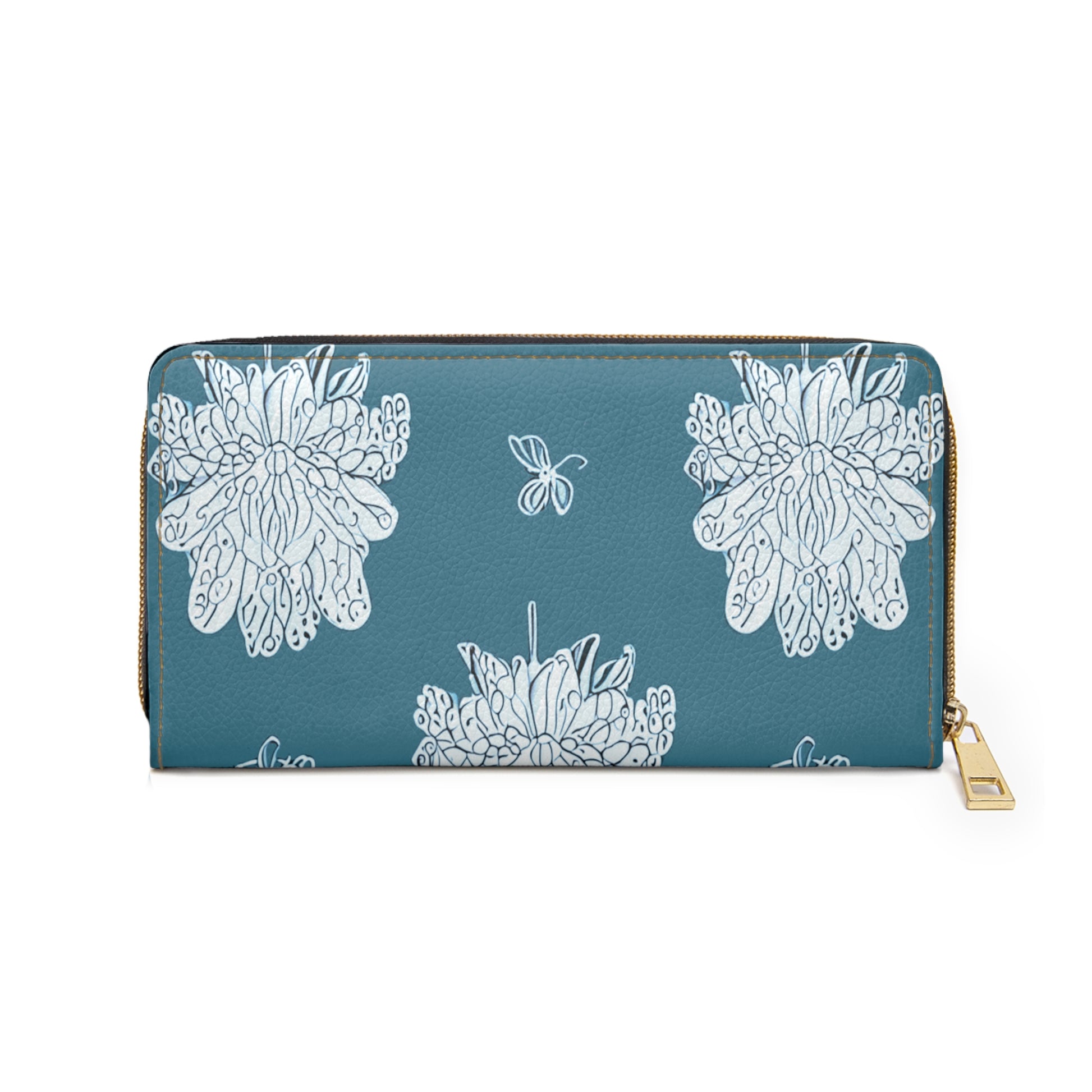 Tif Green White Floral Butterflies Elegant Abstract Zipper Wallet - Stylish & Functional Accessory for Everyday Use