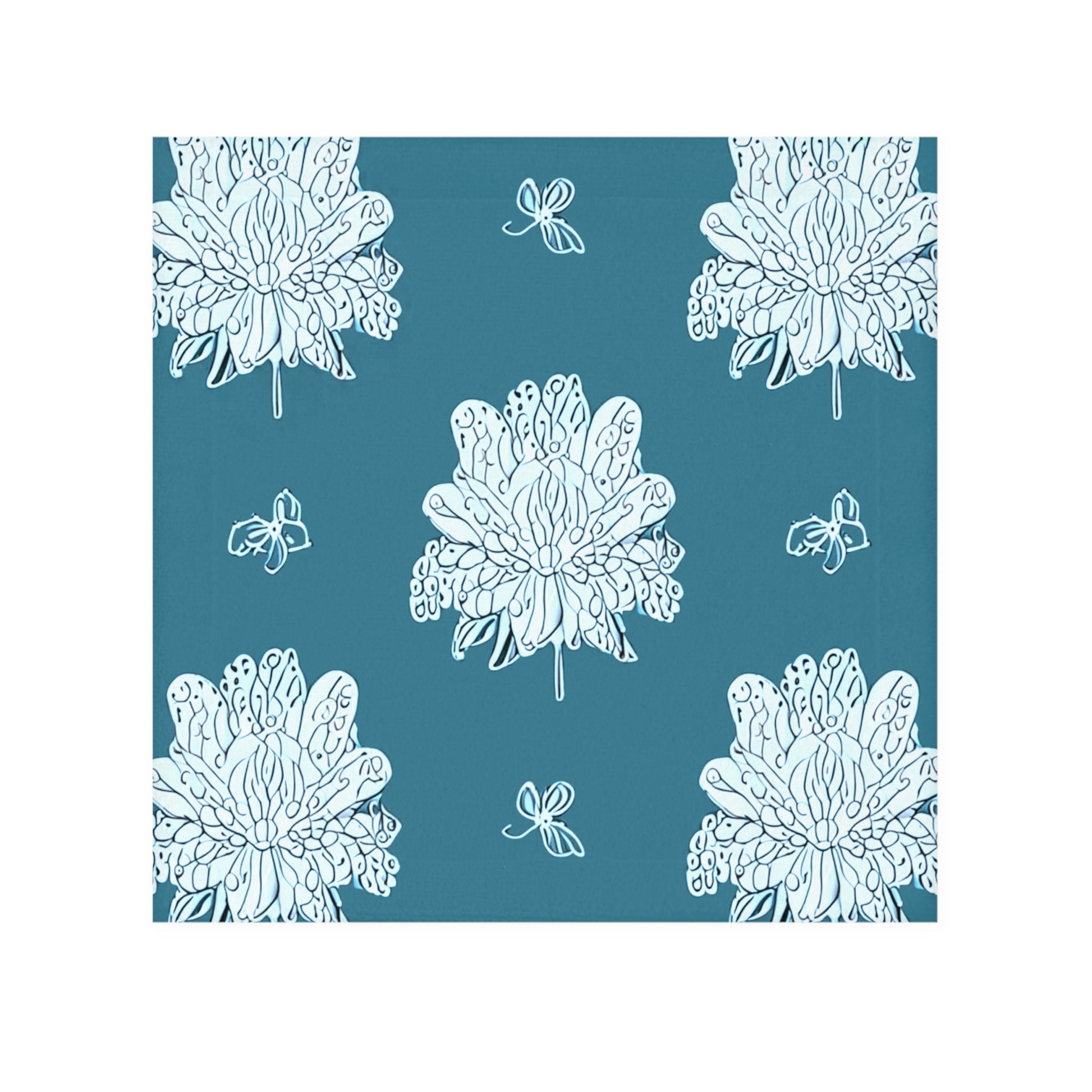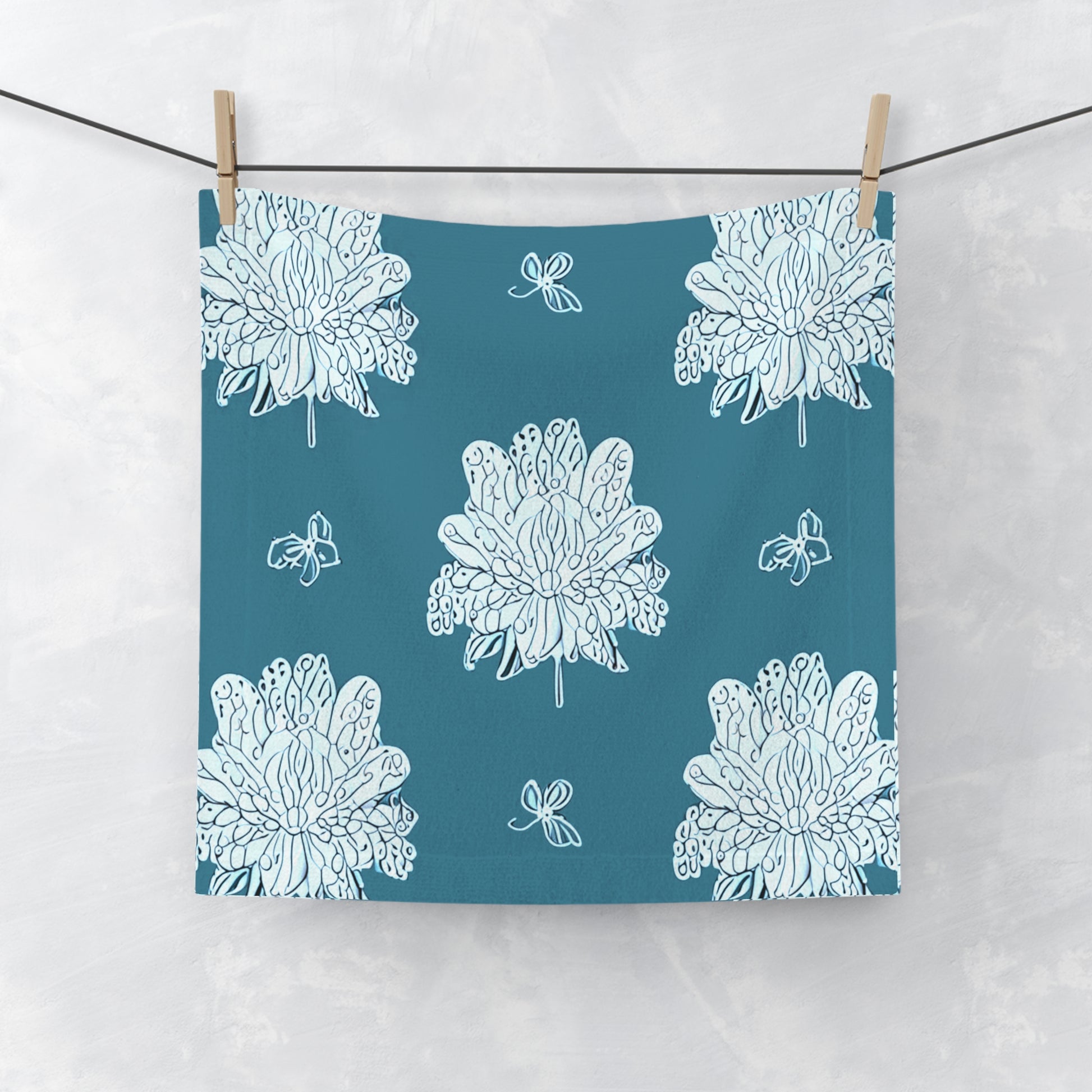 Tif Green White Floral Butterflies Face Towel, 13" x 13"