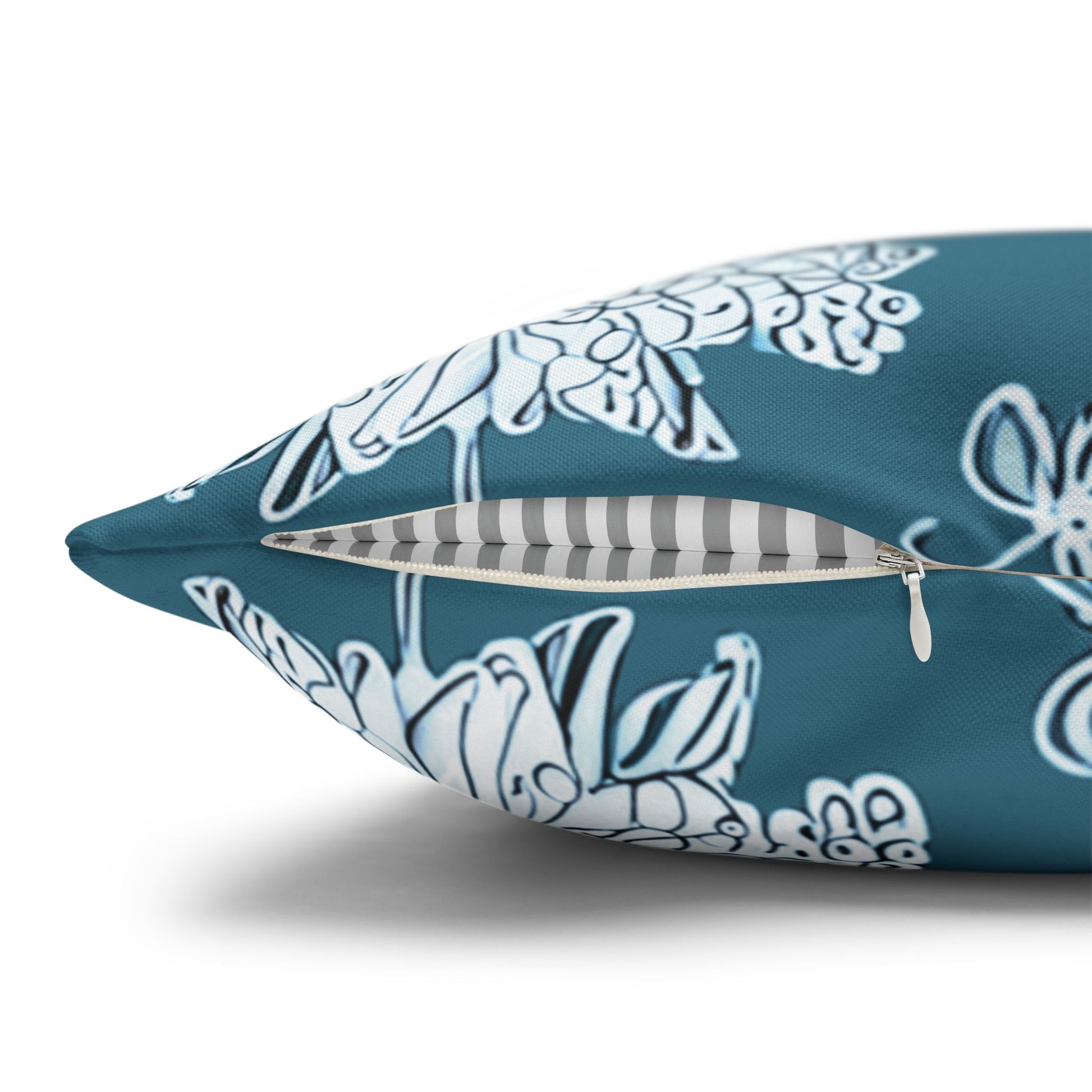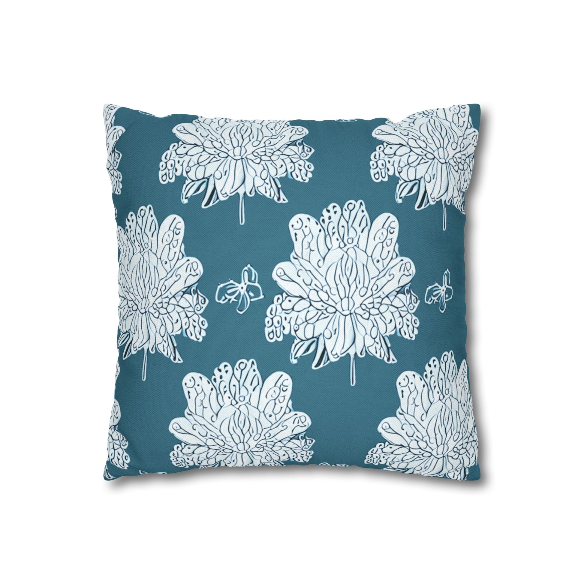 Tif Green White Floral Butterflies Spun Polyester Square Pillowcase, 14" x 14"