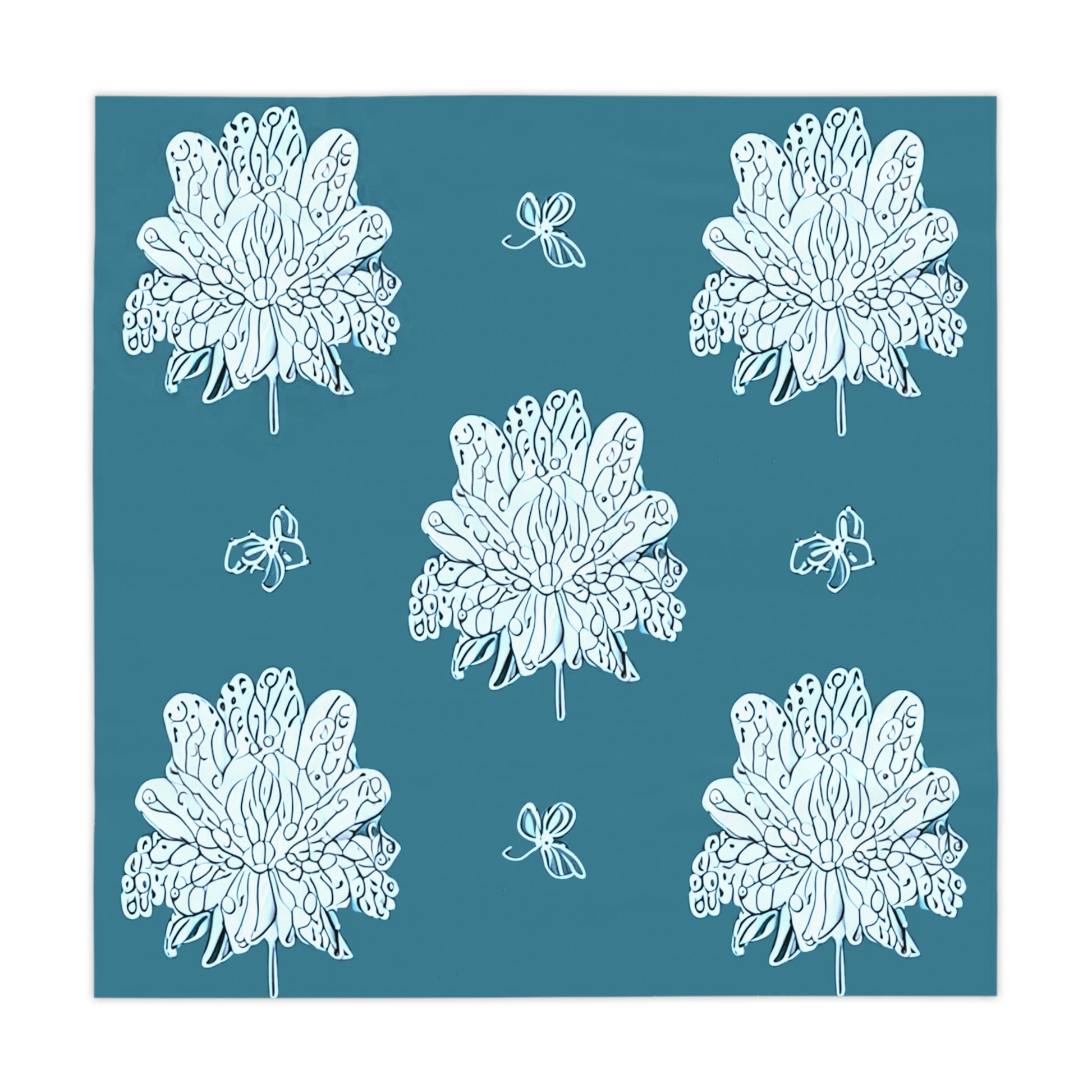 Tif Green White Floral Butterflies Tablecloth, 55" x 55"