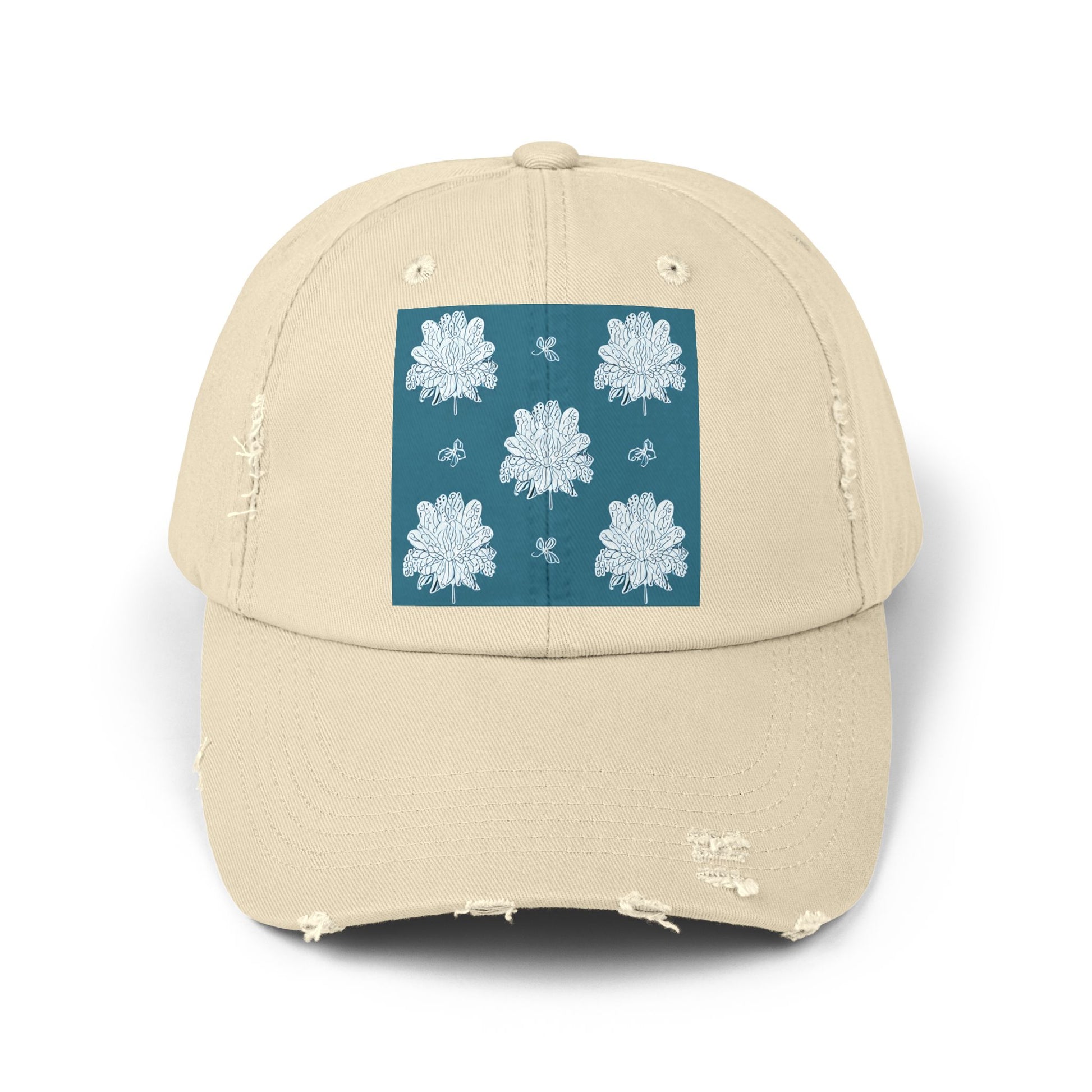 Tif Green White Floral Butterflies Unisex Distressed Cap