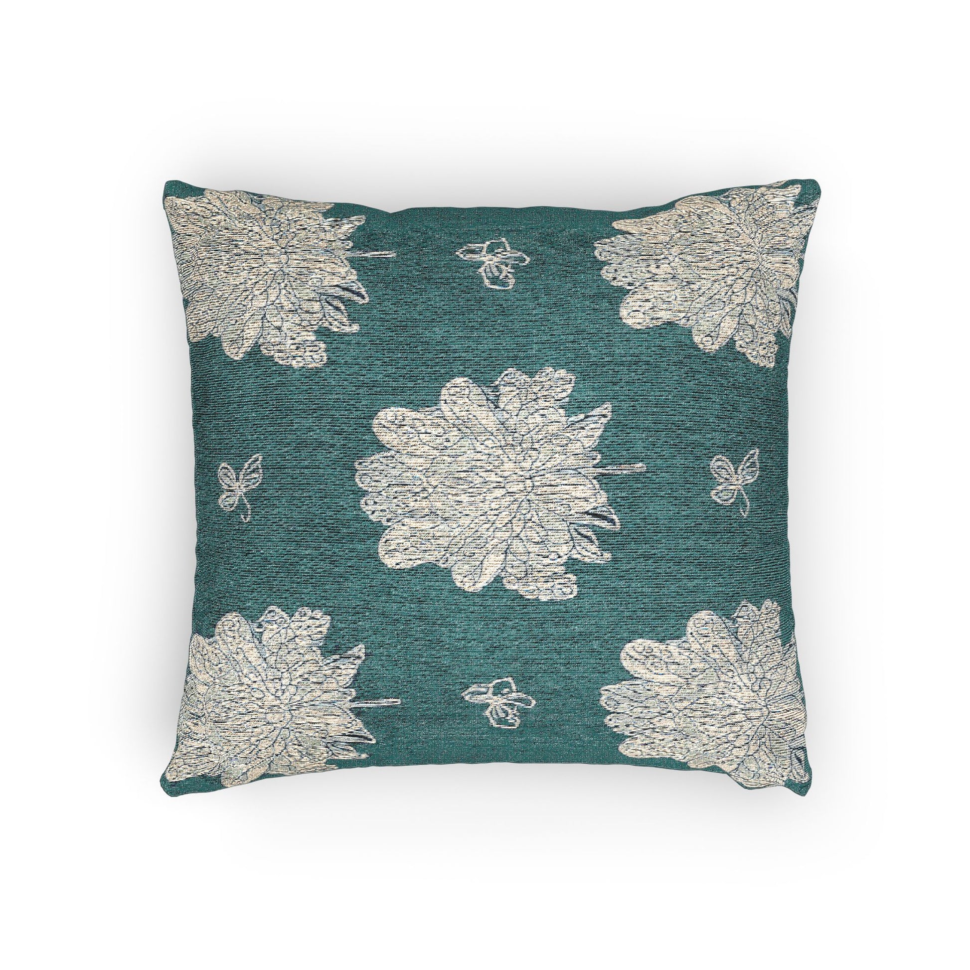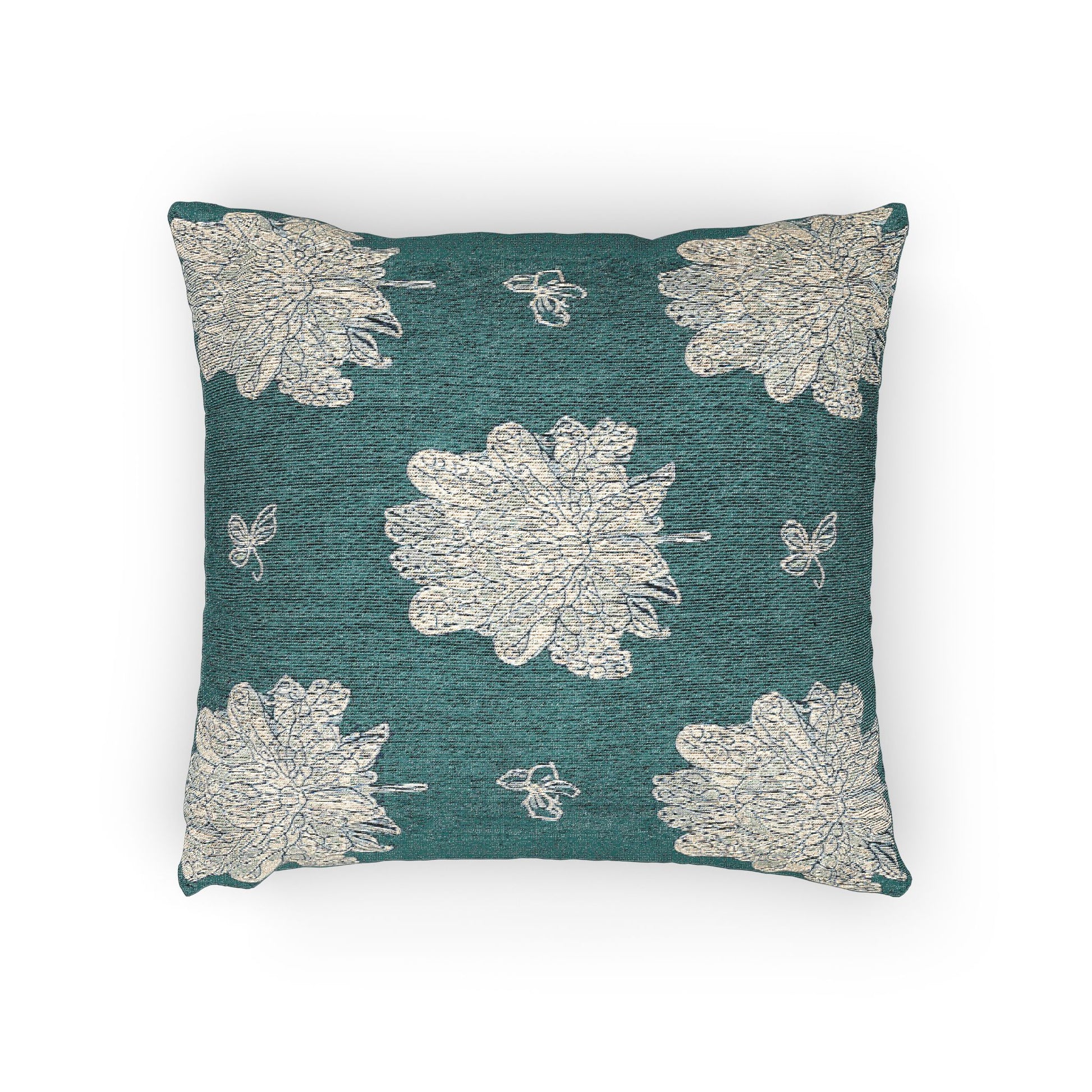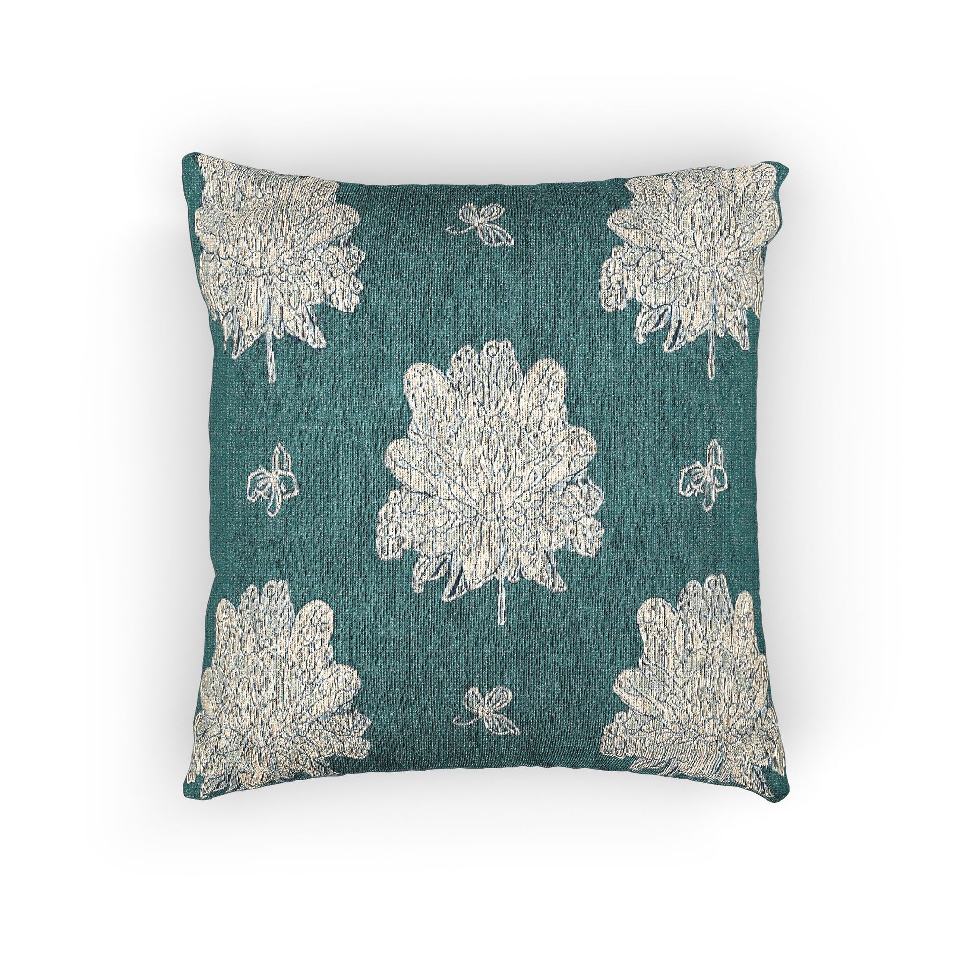 Tif Green White Floral Butterflies Woven Pillow, 17" x 18"