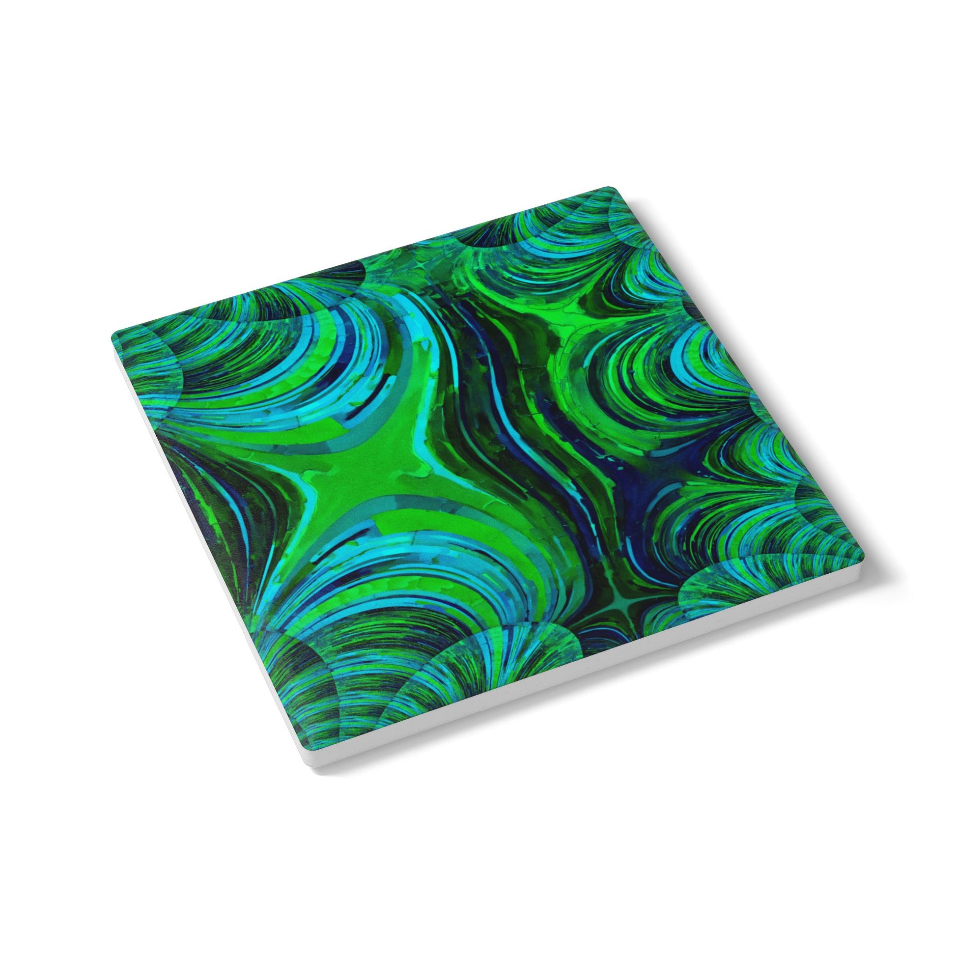 Uzi Spiral Blue Green 4" x 4" Square Ceramic Coaster