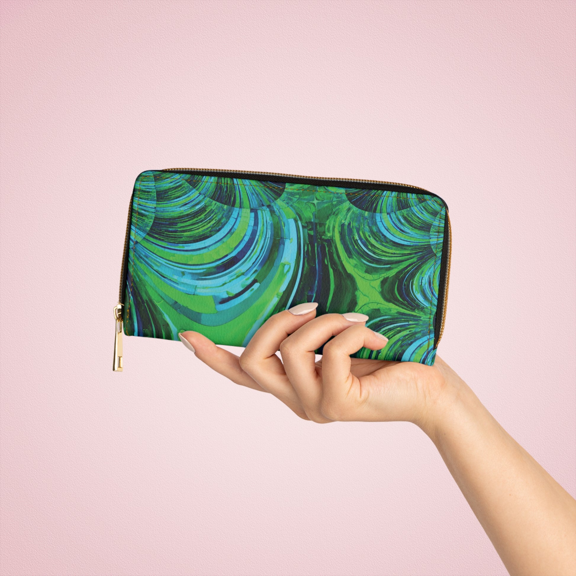 Uzi Spiral Blue Green Elegant Abstract Zipper Wallet - Stylish & Functional Accessory for Everyday Use