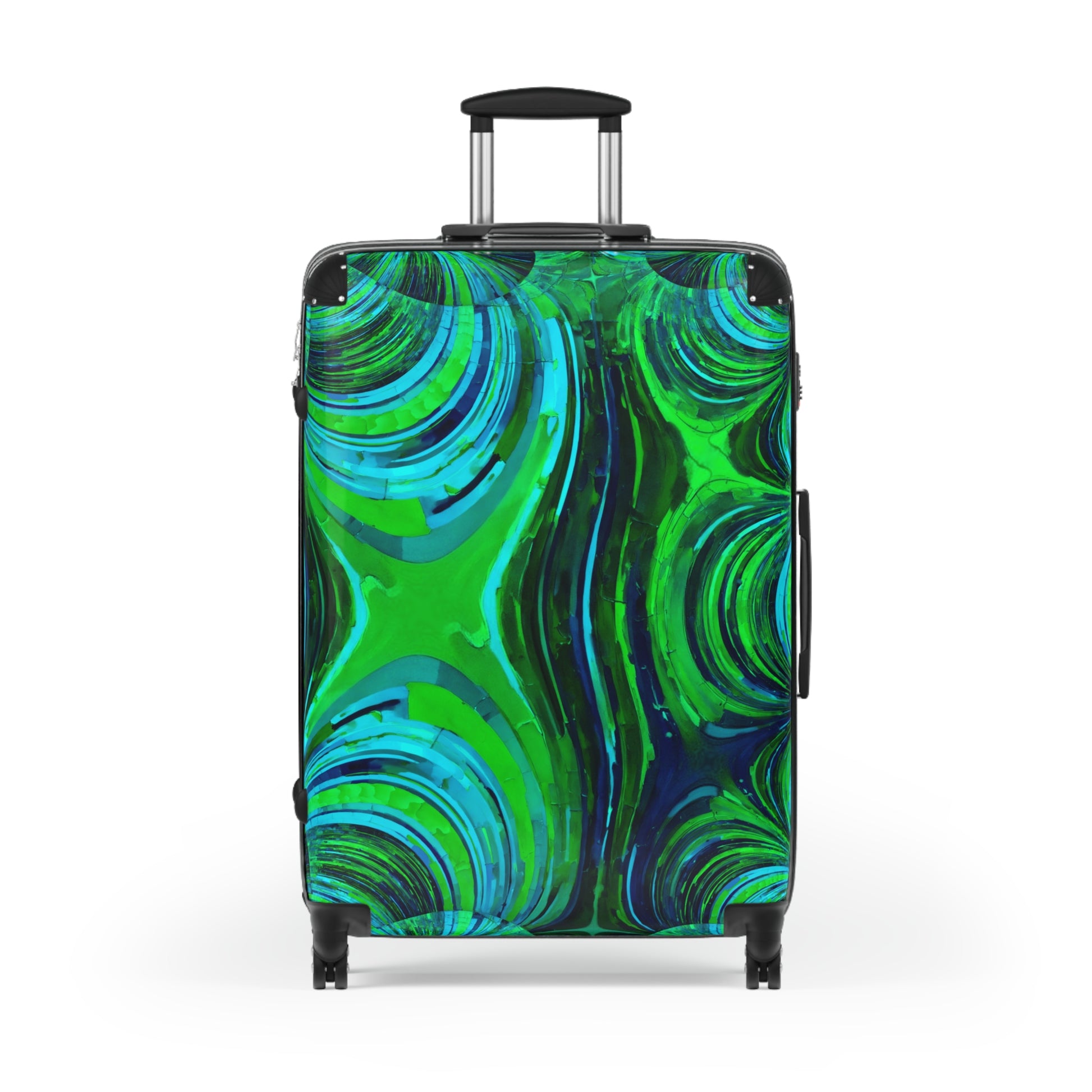Uzi Spiral Blue Green Large Suitcase with built in lock, 4 double-wheels, telescopic handle, and ABS back hard-shell