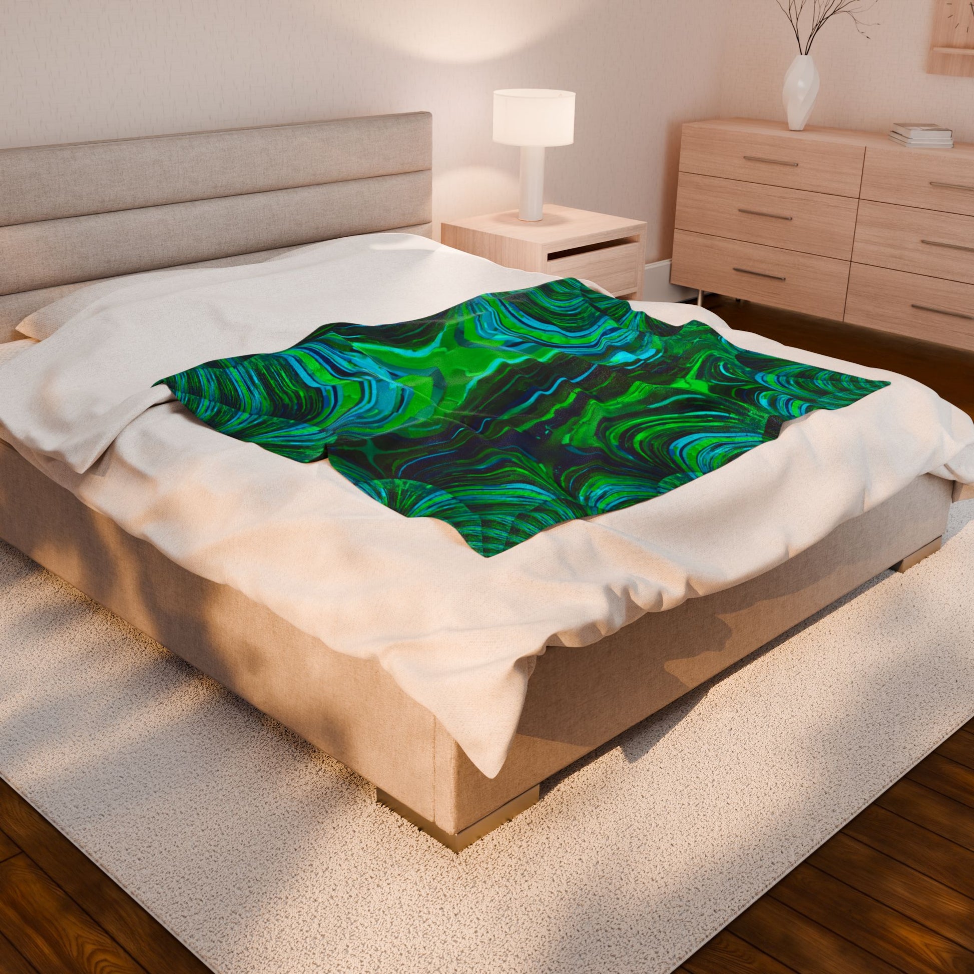 Uzi Spiral Blue Green Velveteen Plush Blanket, 50" x 60"