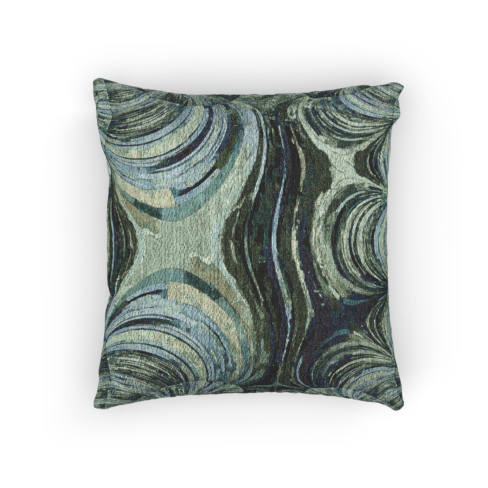 Uzi Spiral Blue Green Woven Pillow, 17" x 18"