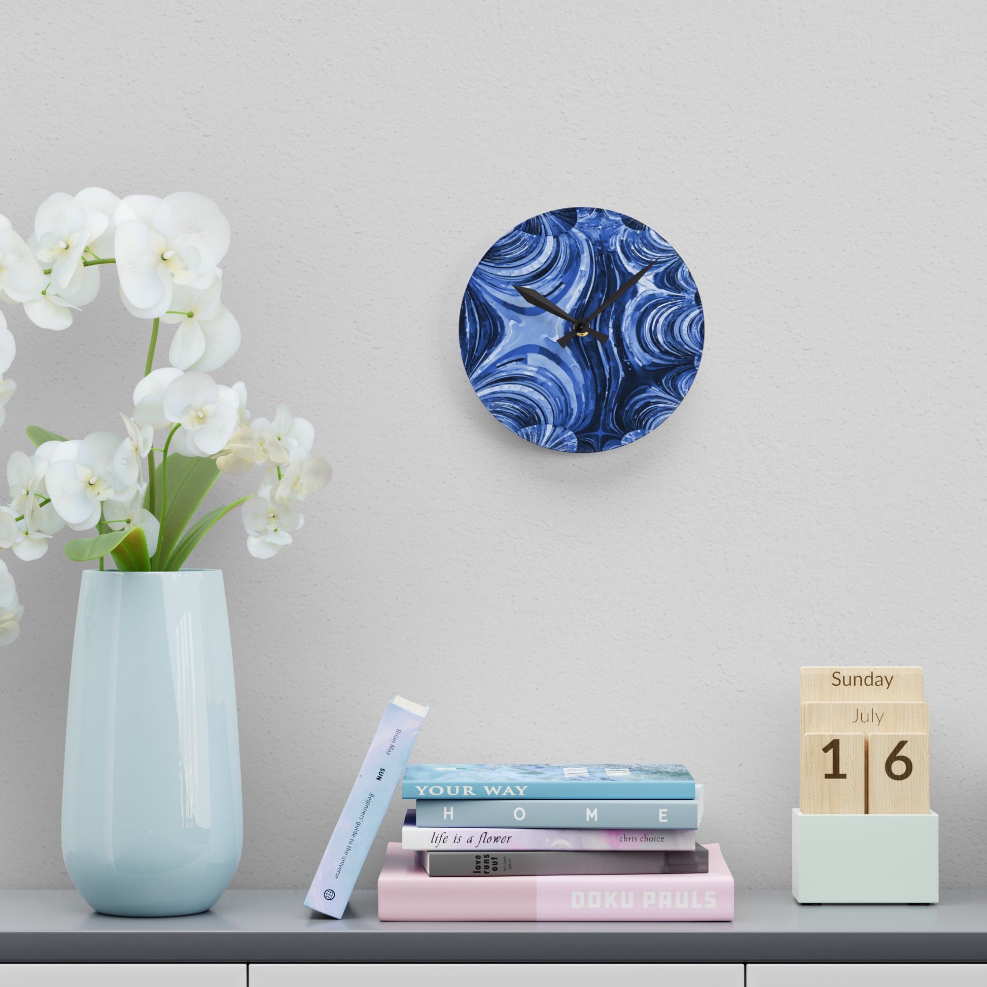 Why settle for a plain clock when yours can double as art? This acrylic wall clock is printed with my original, copyright-protected design and made just for you — no two are exactly alike. The high-gloss finish and crystal-clear acrylic give it a sleek, modern look, while the bold artwork makes it a true conversation starter.