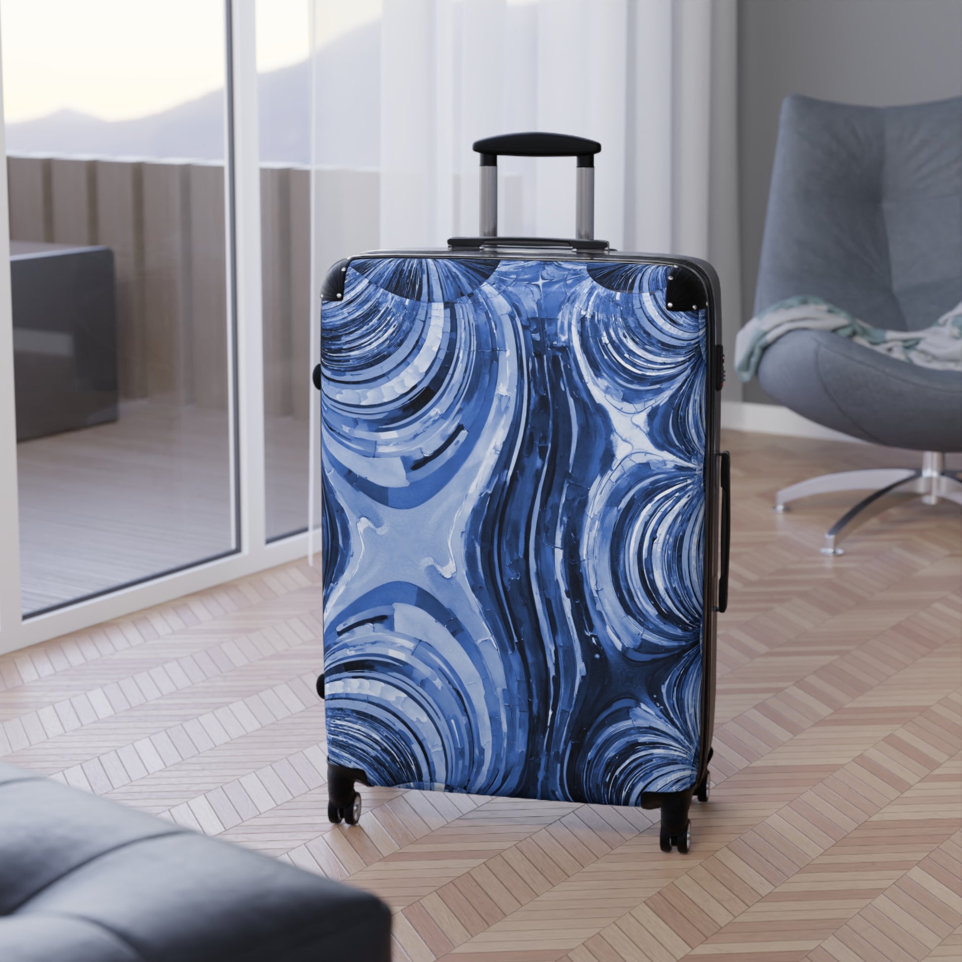Uzi Spiral Deep Blue Large Suitcase with built in lock, 4 double-wheels, telescopic handle, and ABS back hard-shell