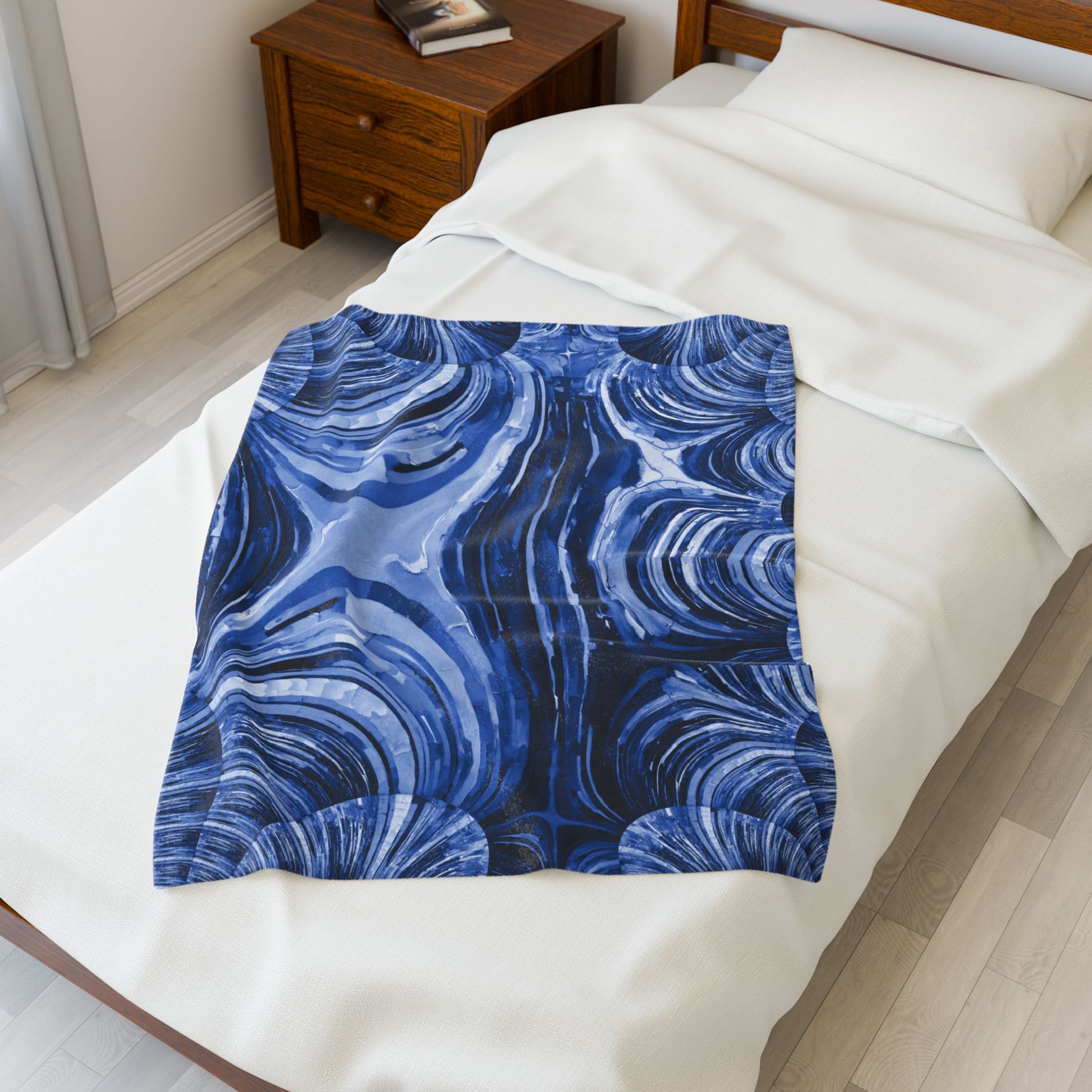 Uzi Spiral Deep Blue Velveteen Plush Blanket, 30" x 40"