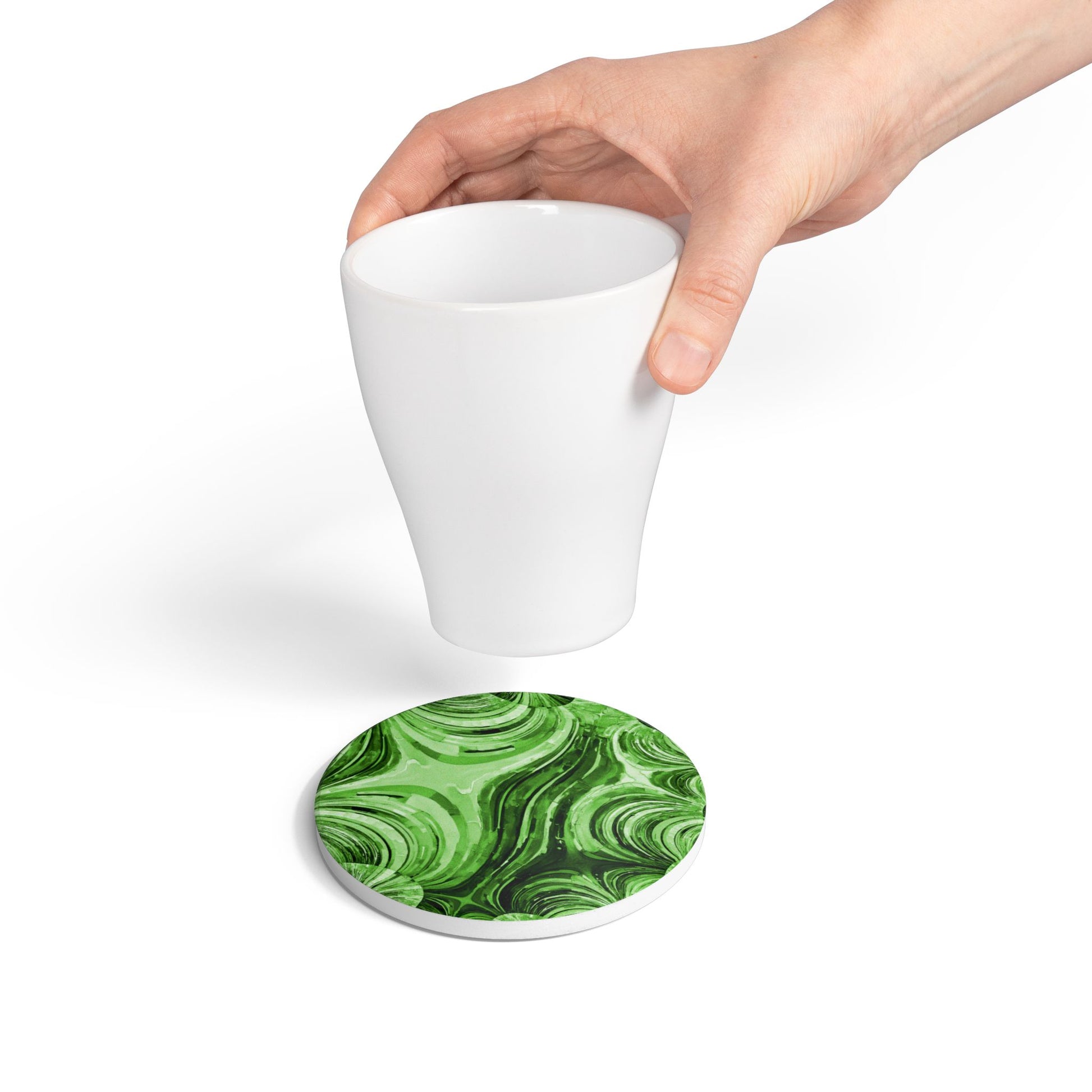 Uzi Spiral Mint Pastel 4" x 4" Round Ceramic Coaster