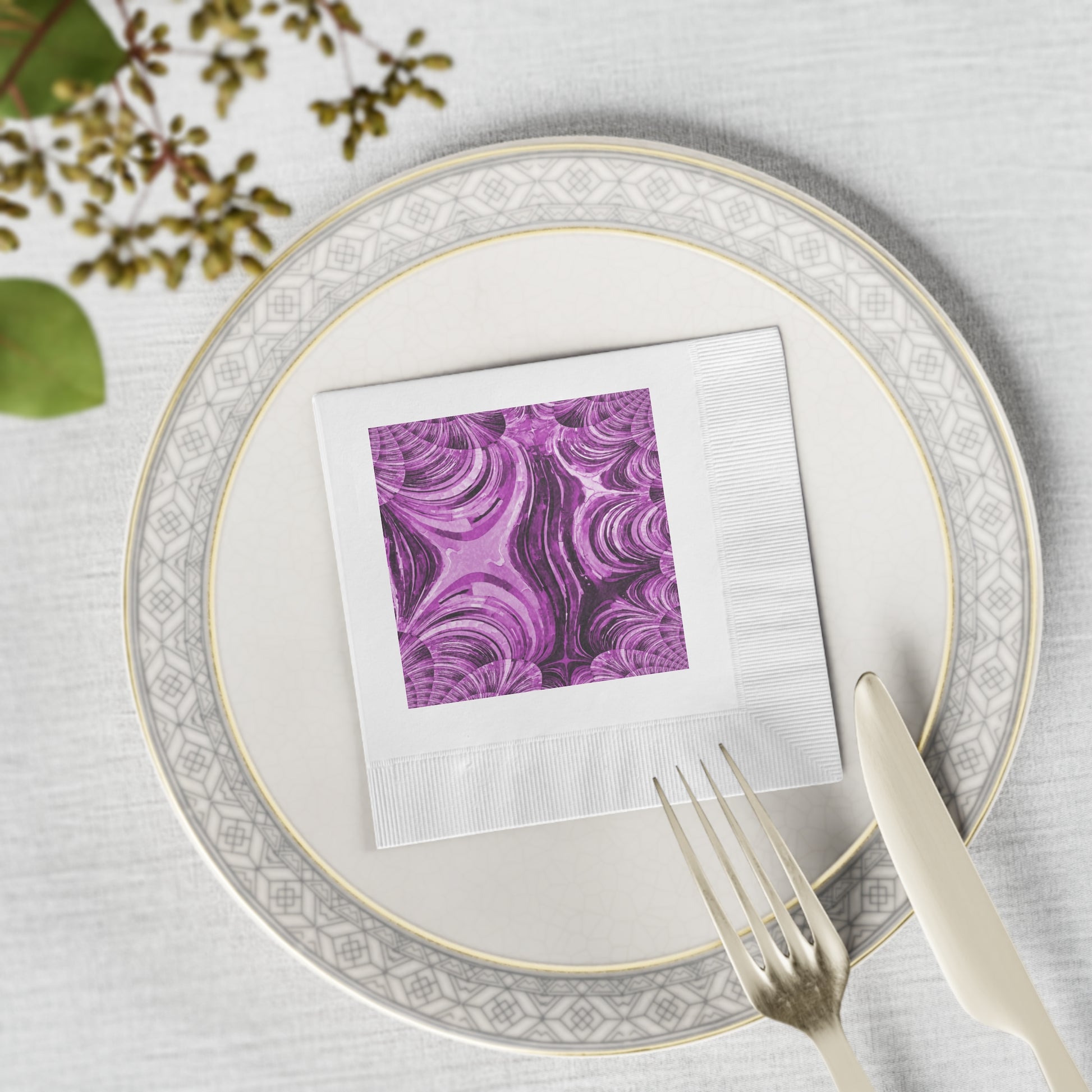 .: NB! The ink used in fulfillment may leave a faint shadow around the design's border, as well as specks on the napkin's edge