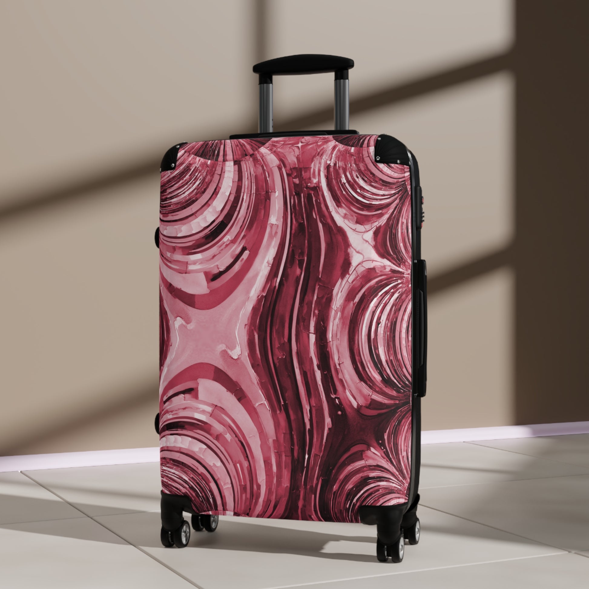 Uzi Spiral Ruby Medium Suitcase with built in lock, 4 double-wheels, telescopic handle, and ABS back hard-shell