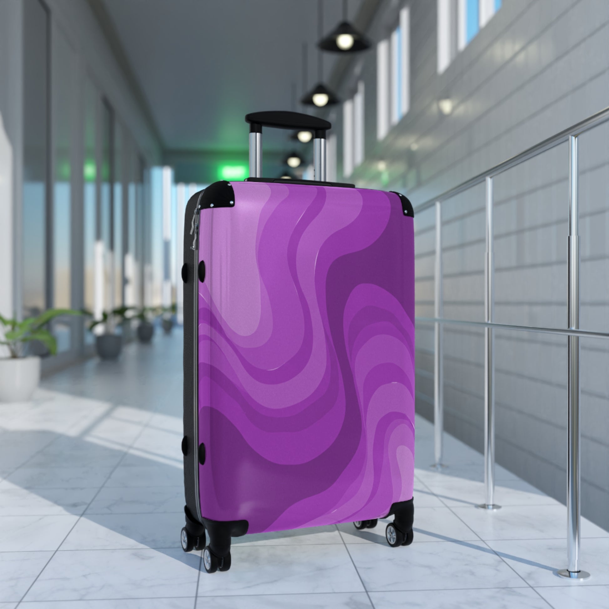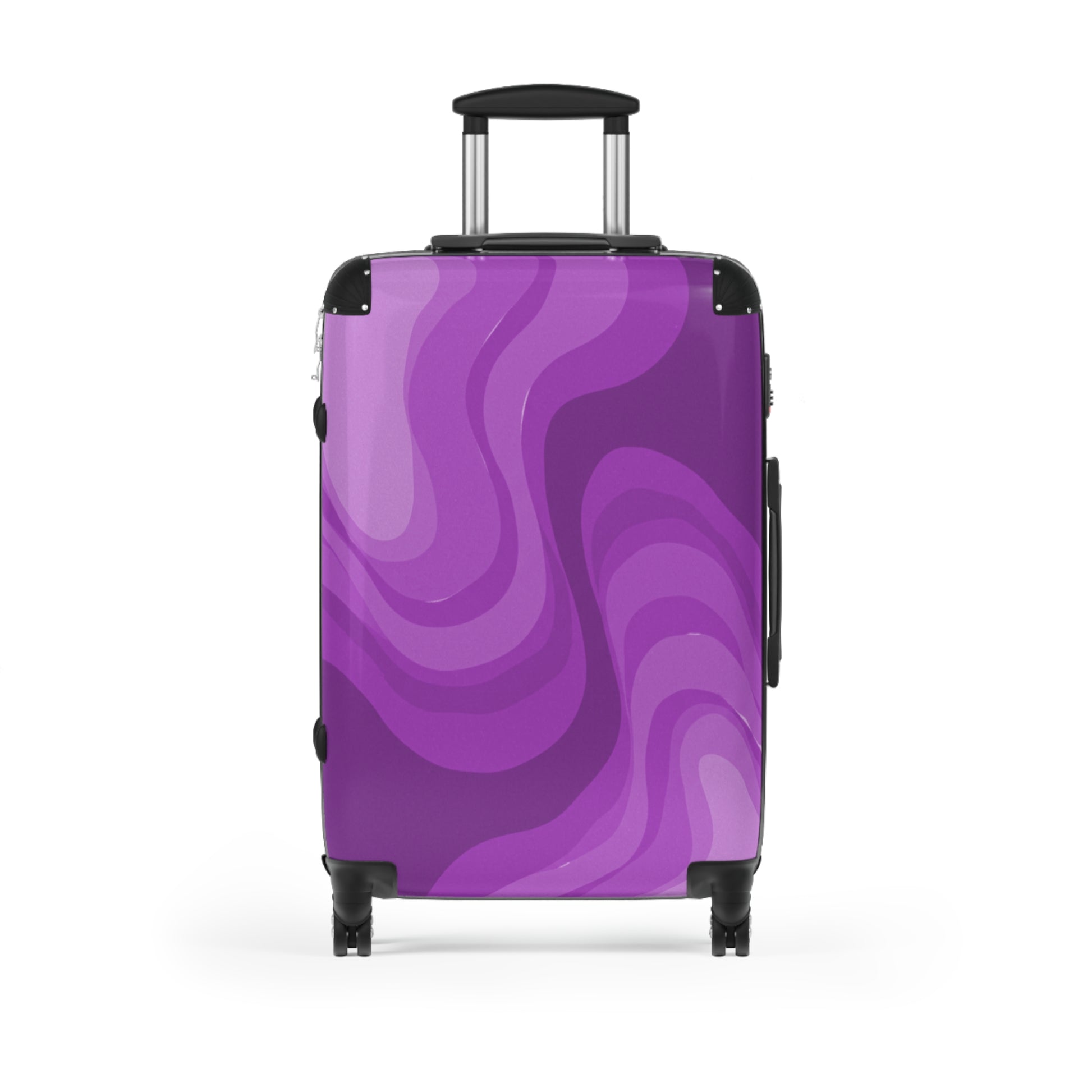 Wavey Purple Wavey Medium Suitcase with built in lock, 4 double-wheels, telescopic handle, and ABS back hard-shell