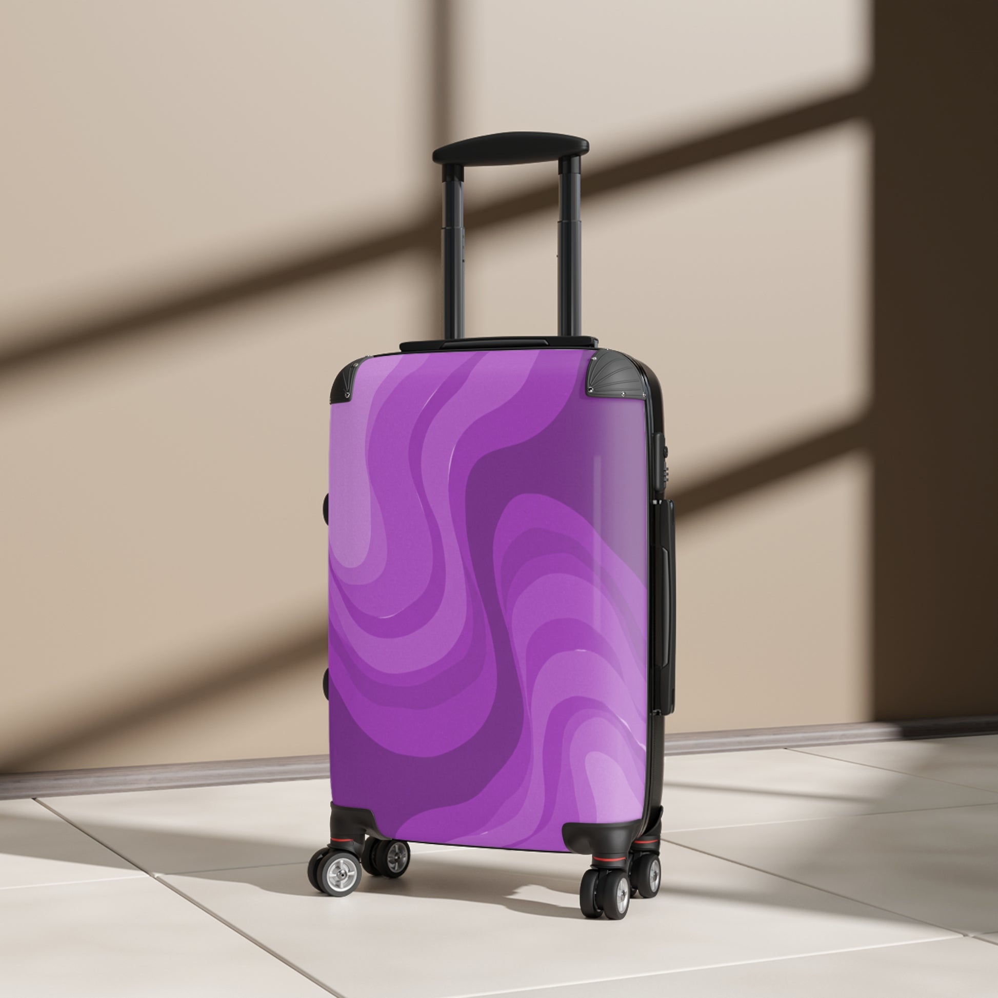 Wavey Purple Wavey Small Suitcase with built in lock, 4 double-wheels, telescopic handle, and ABS back hard-shell