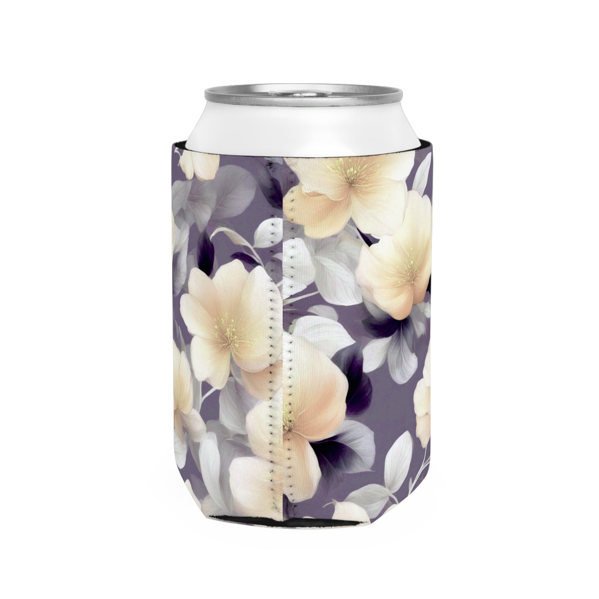 White Blush Floral Bunch 12 oz Can Cooler Sleeve