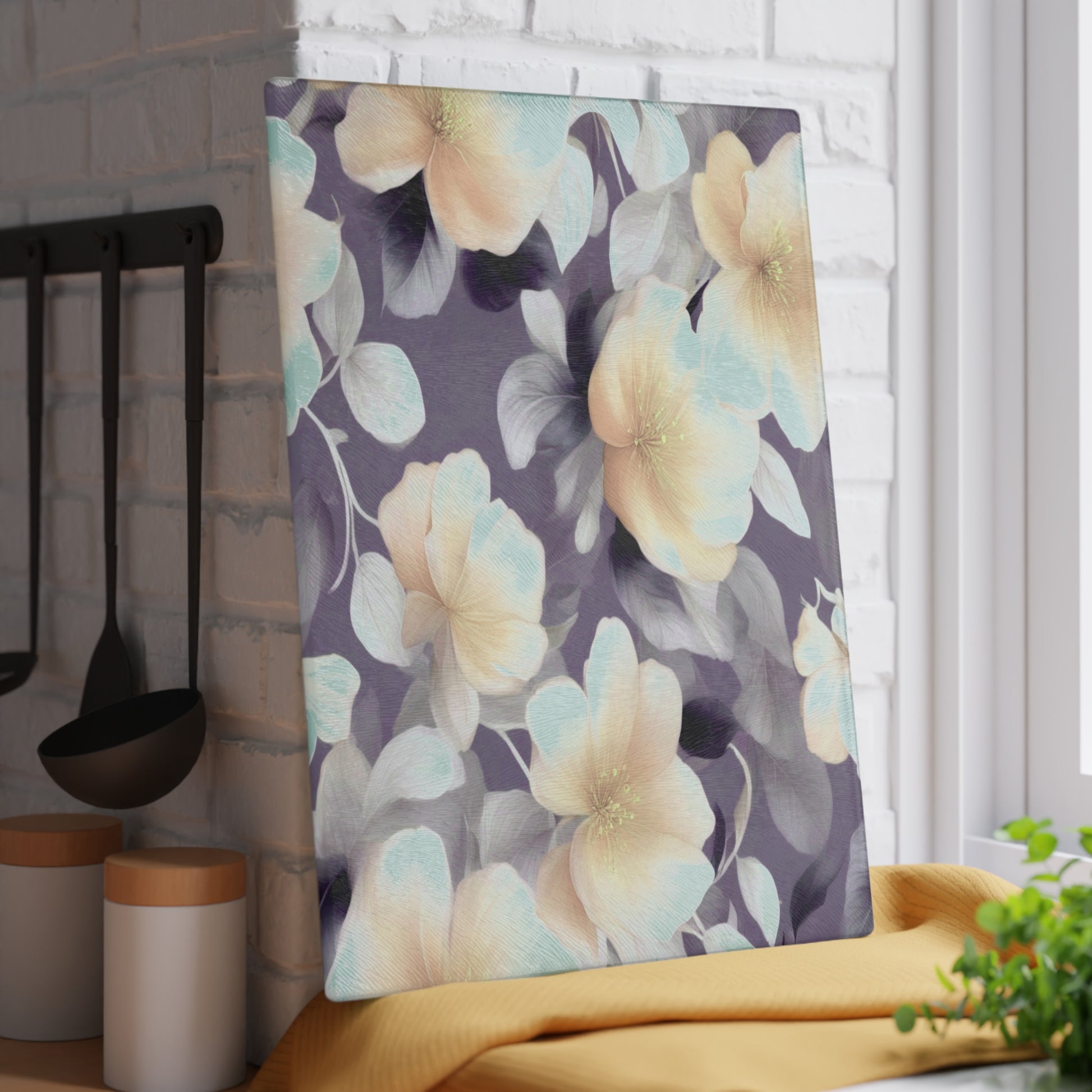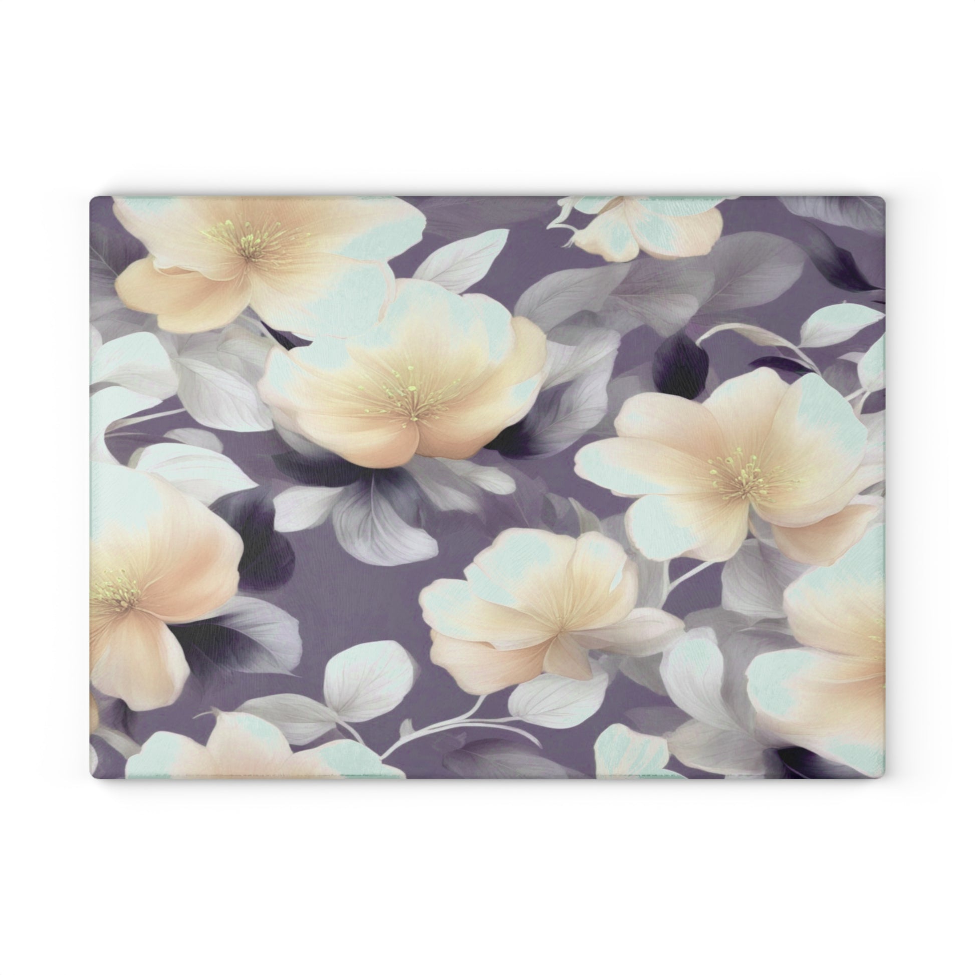 White Blush Floral Bunch Glass Cutting Board, 11" x 15"