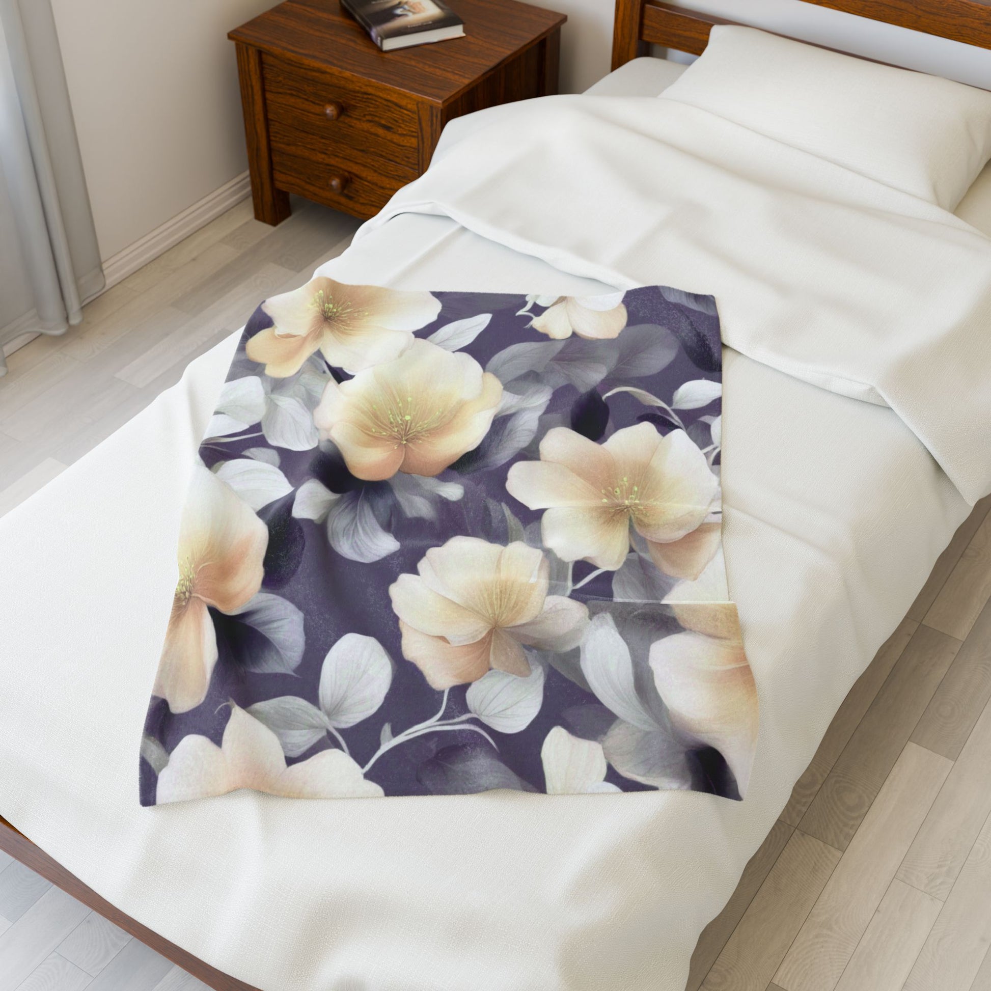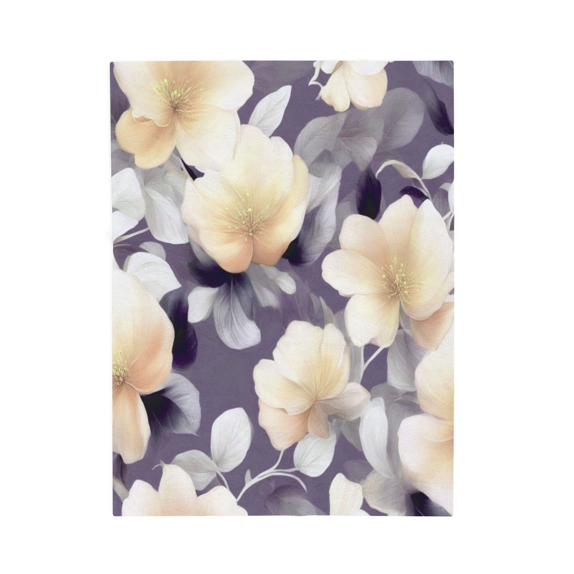 White Blush Floral Bunch Velveteen Plush Blanket, 30" x 40"