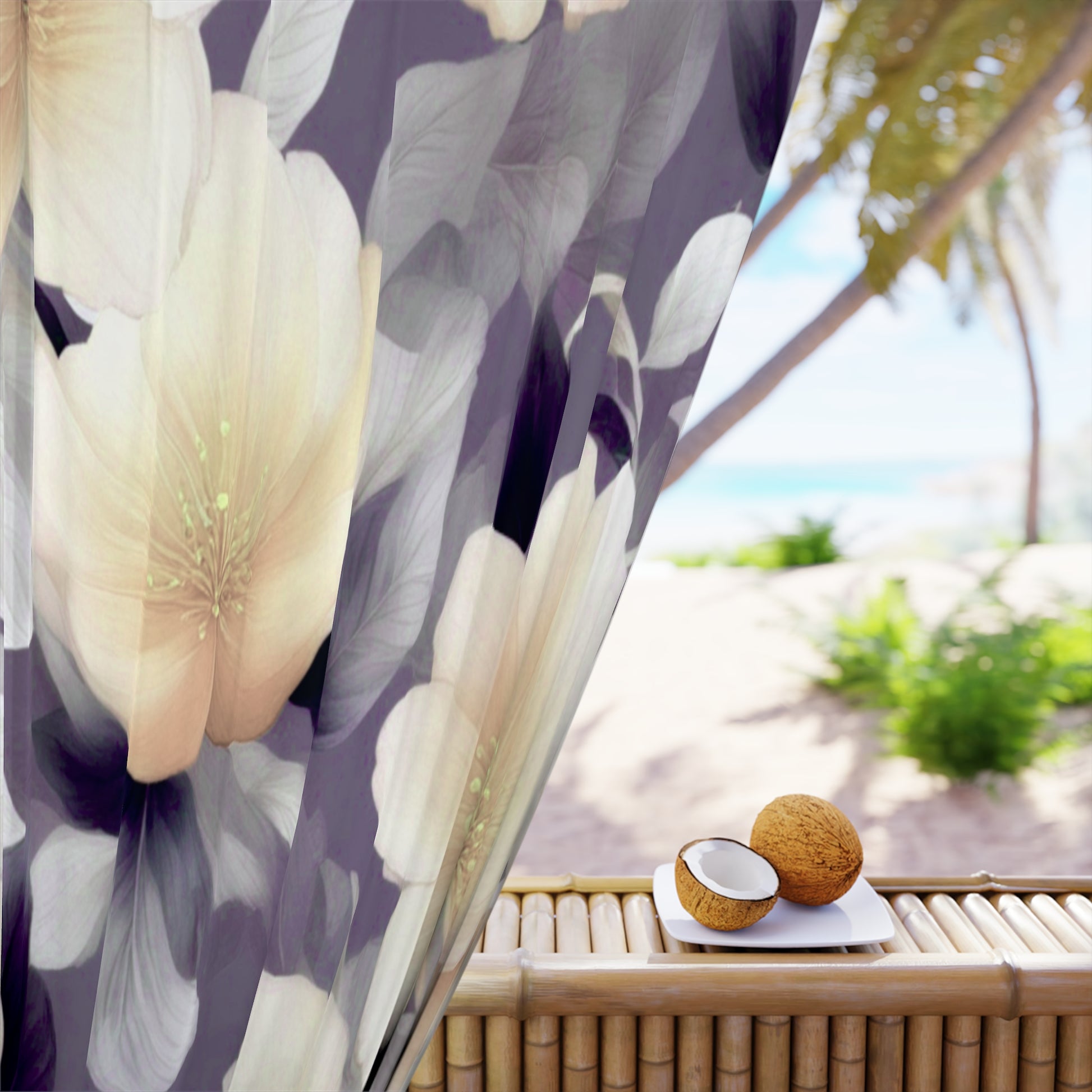 White Blush Floral Bunch Window Curtain, 50" x 84", blackout