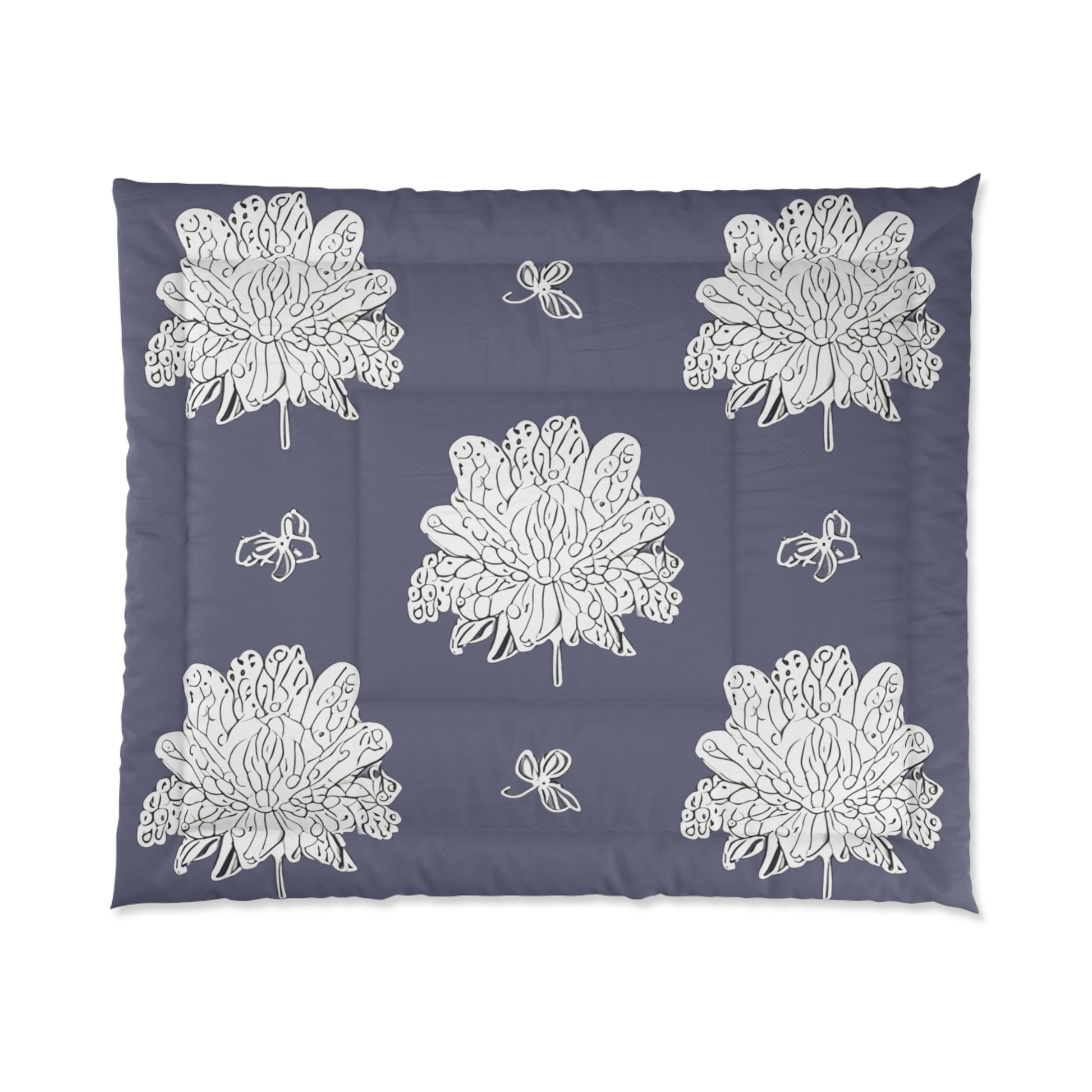 White Floral Butterflies 104" × 88" Comforter