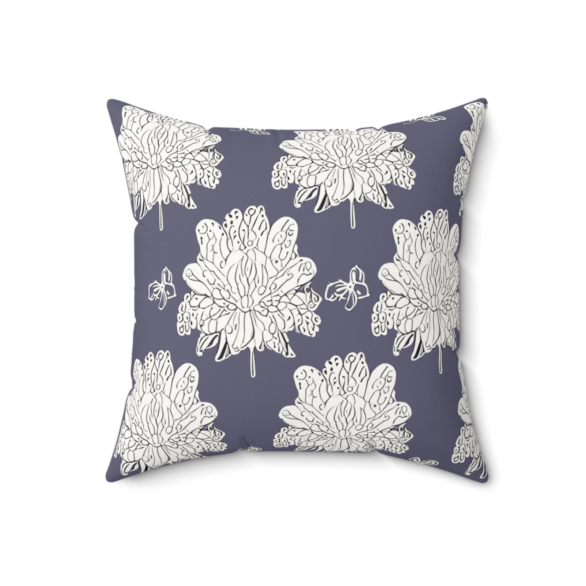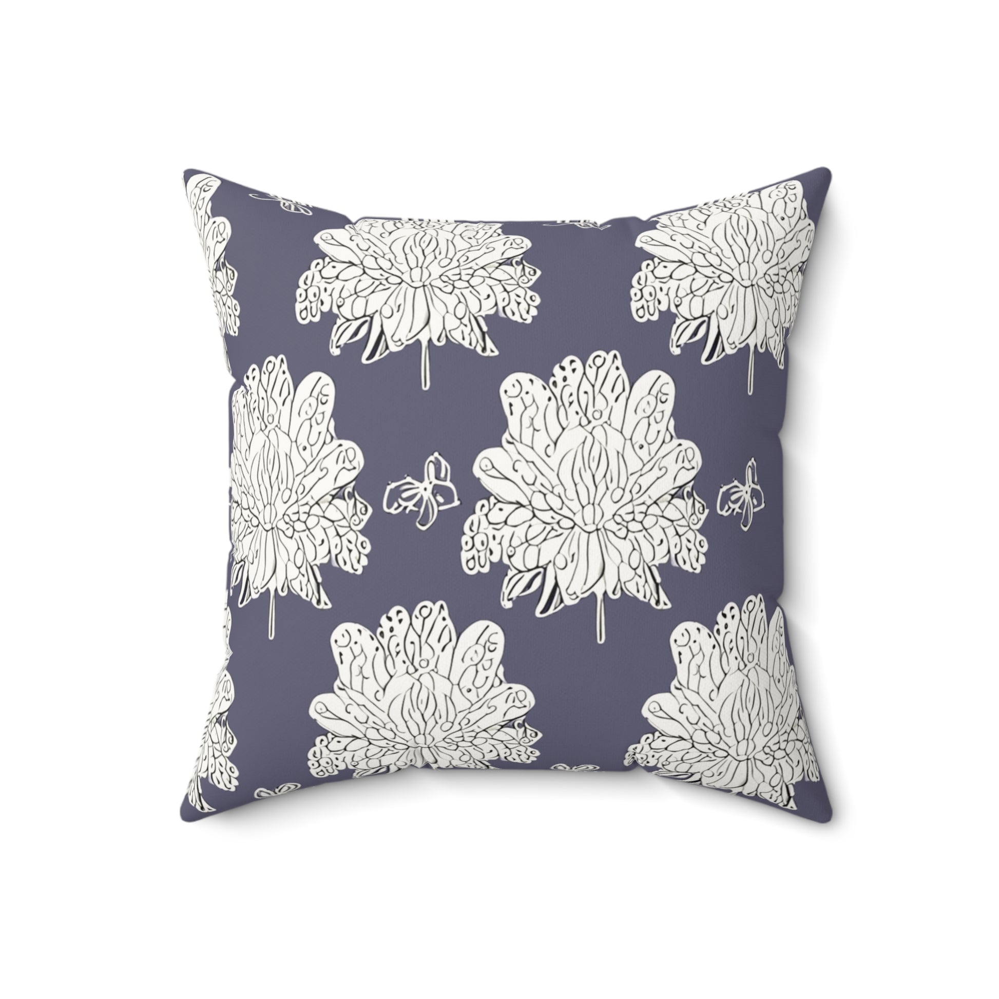 White Floral Butterflies 18" x 18" Faux Suede Square Pillow