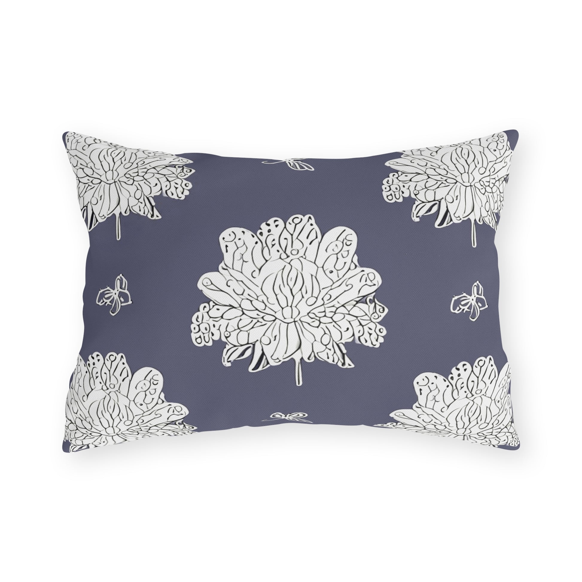 White Floral Butterflies 20" x 14" Outdoor Pillow