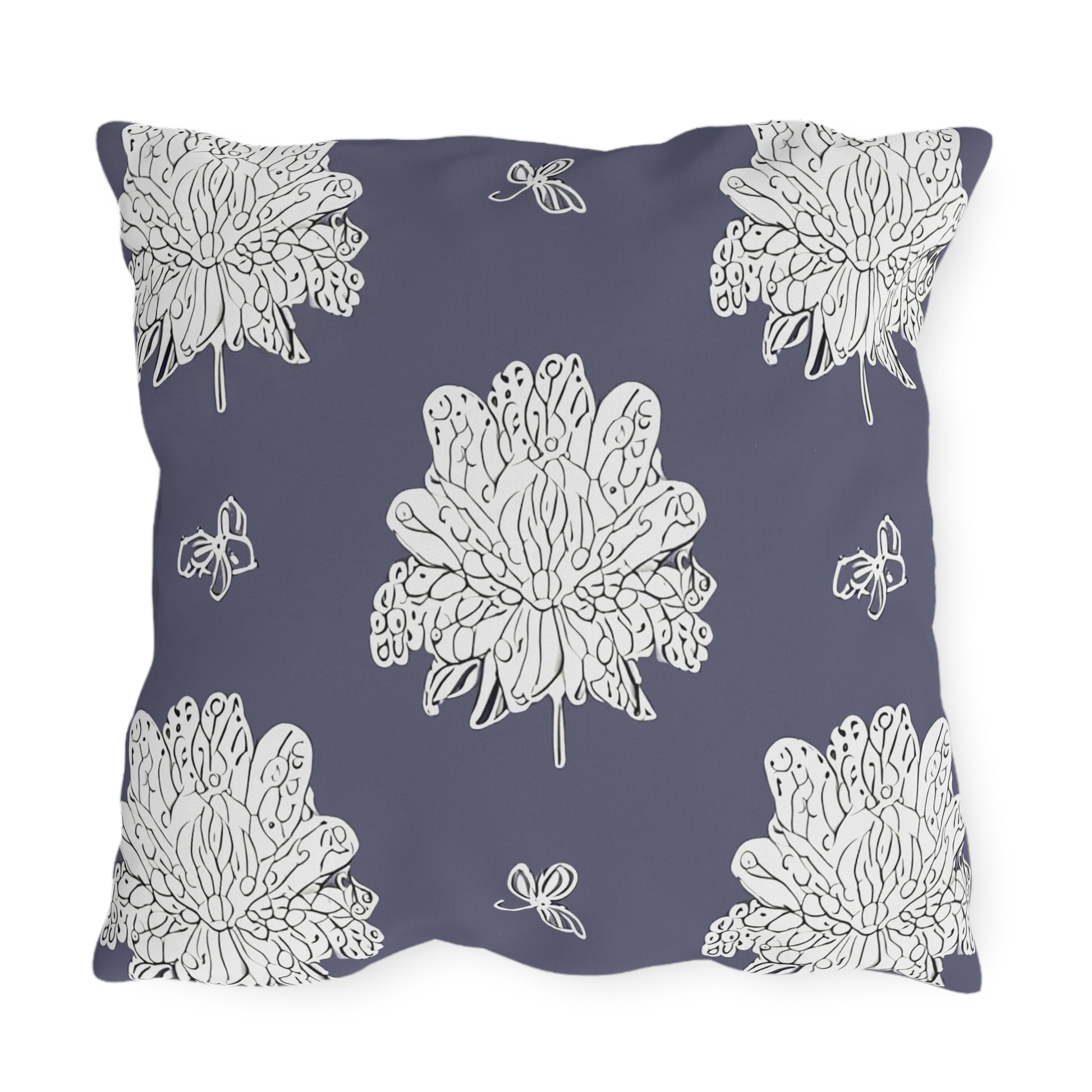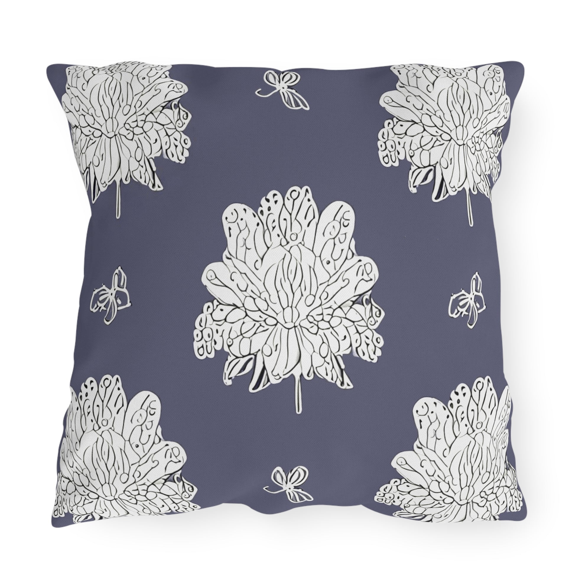 White Floral Butterflies 20" x 20" Outdoor Pillow