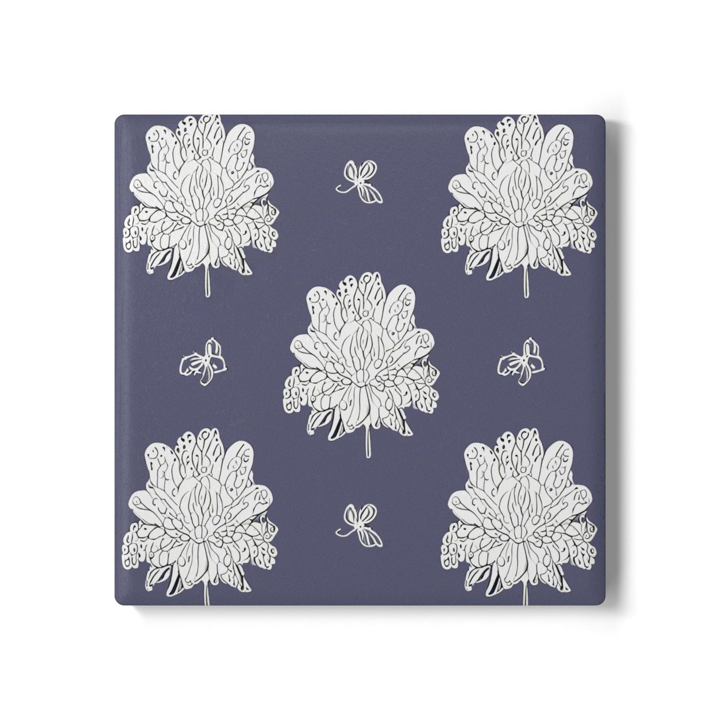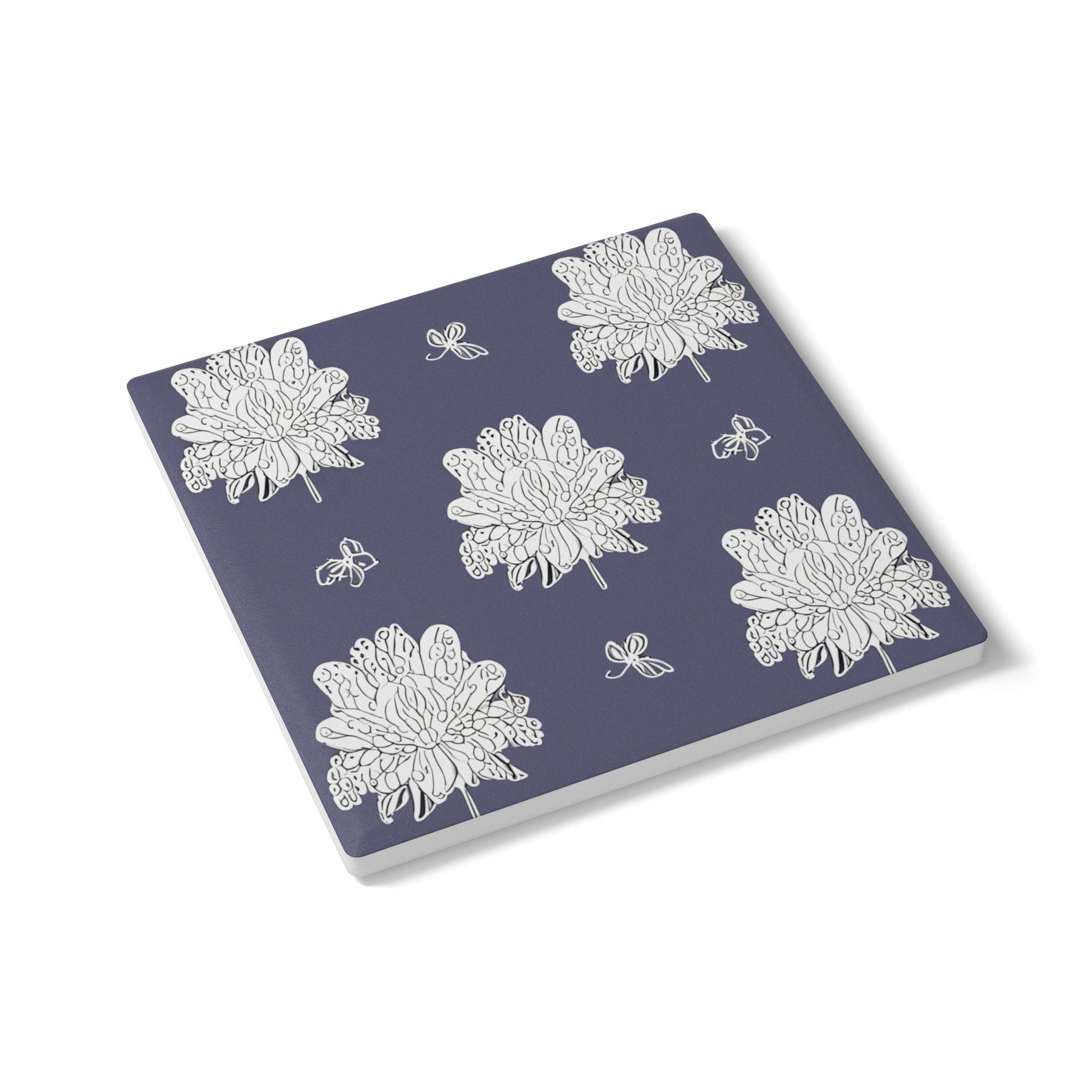 White Floral Butterflies 4" x 4" Square Ceramic Coaster