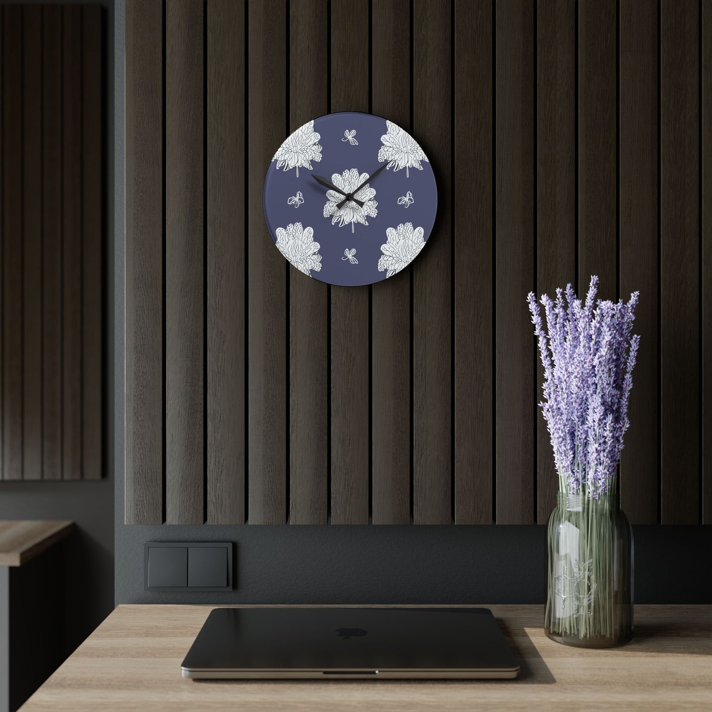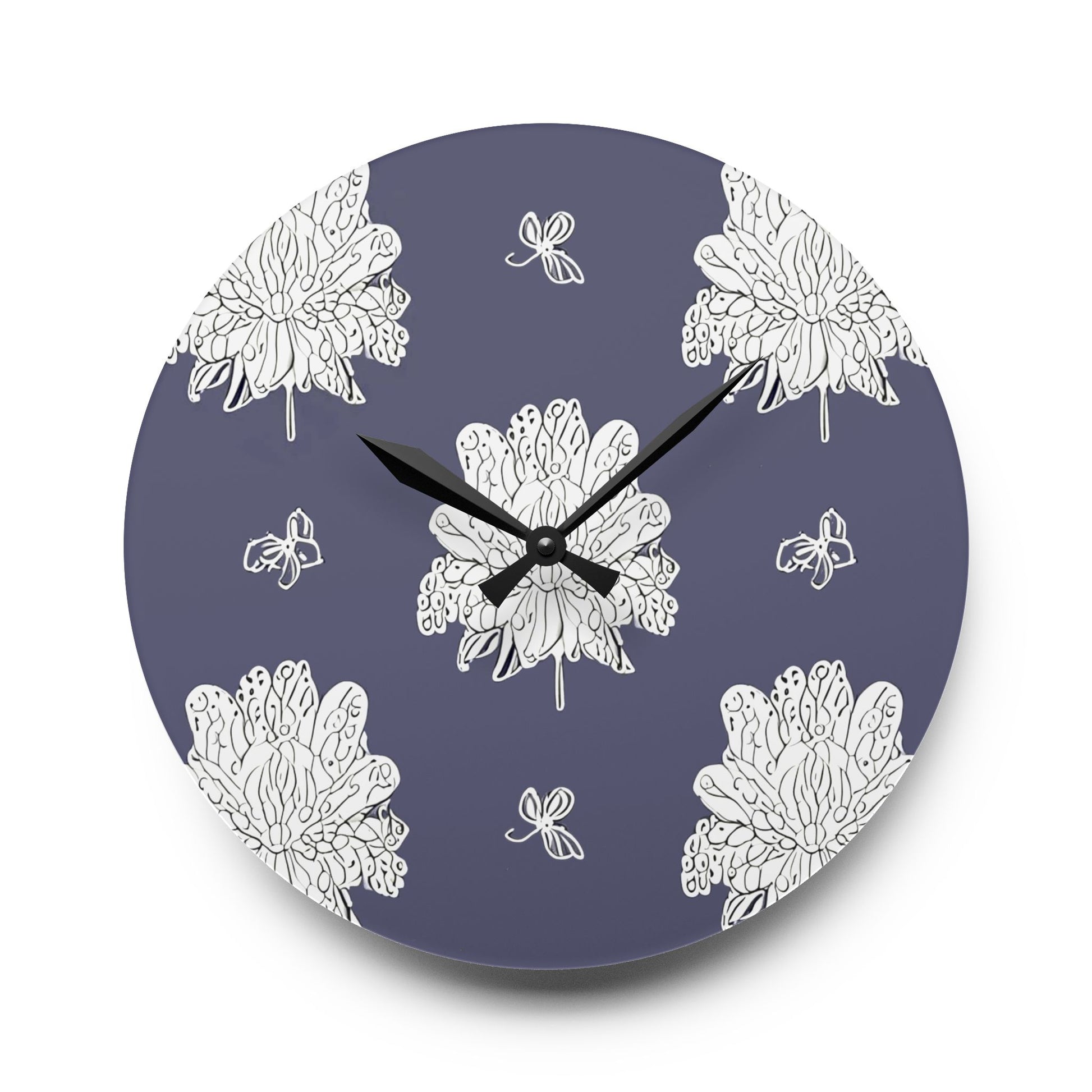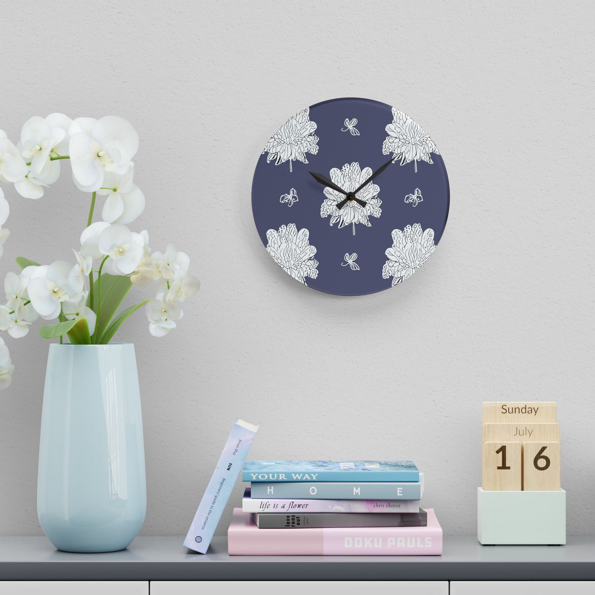 White Floral Butterflies Acrylic Wall Clock, Round or Square, 10.75" x 10.75"
