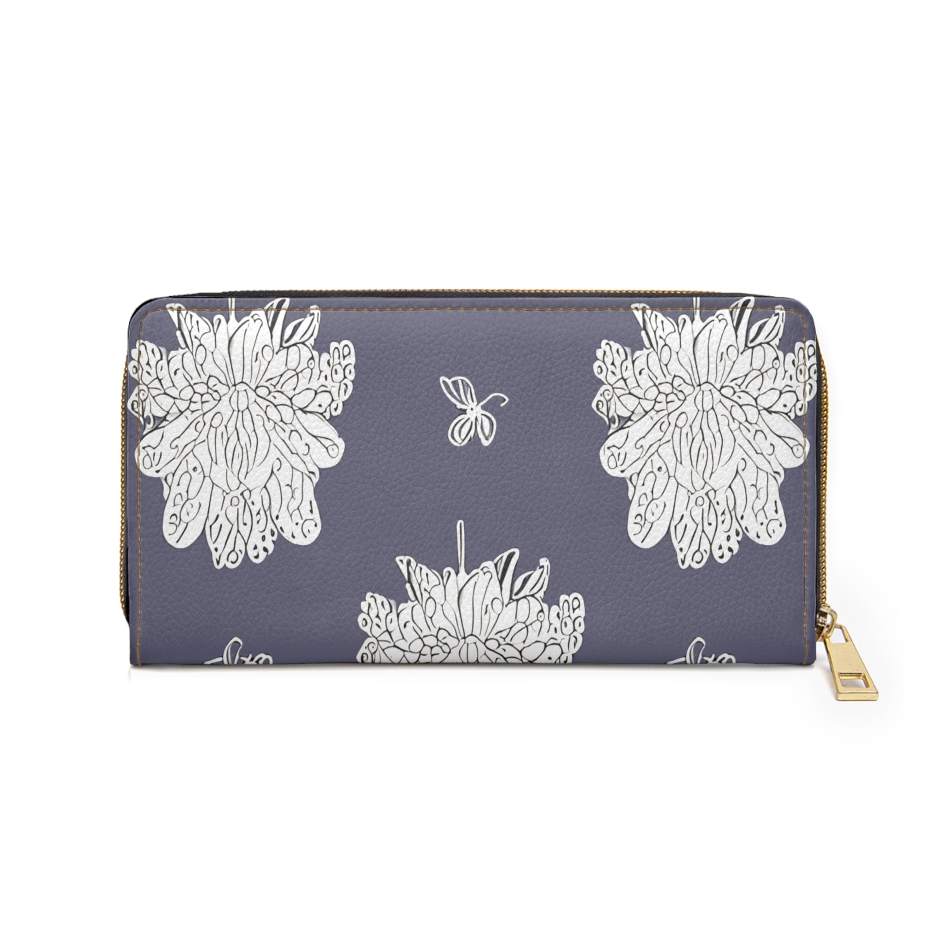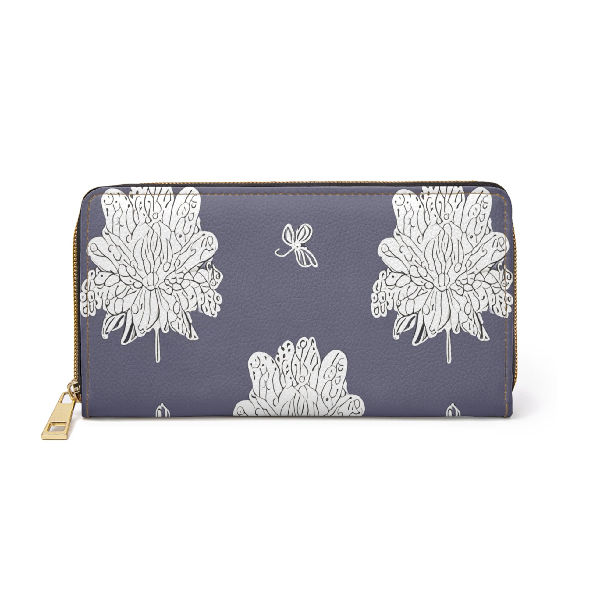 White Floral Butterflies Elegant Abstract Zipper Wallet - Stylish & Functional Accessory for Everyday Use
