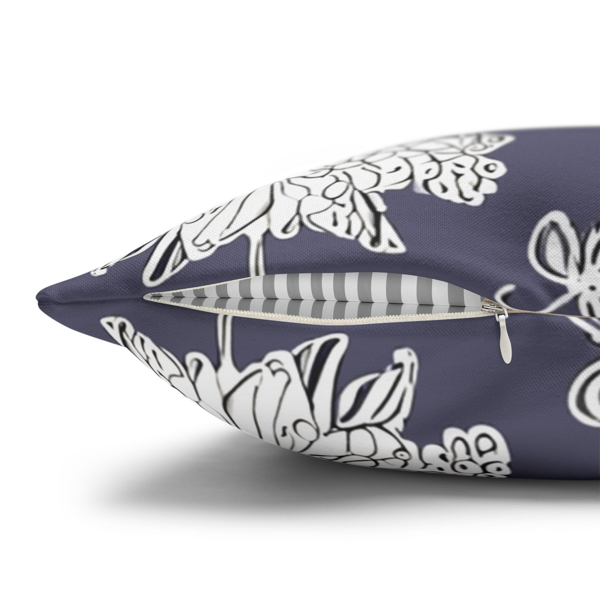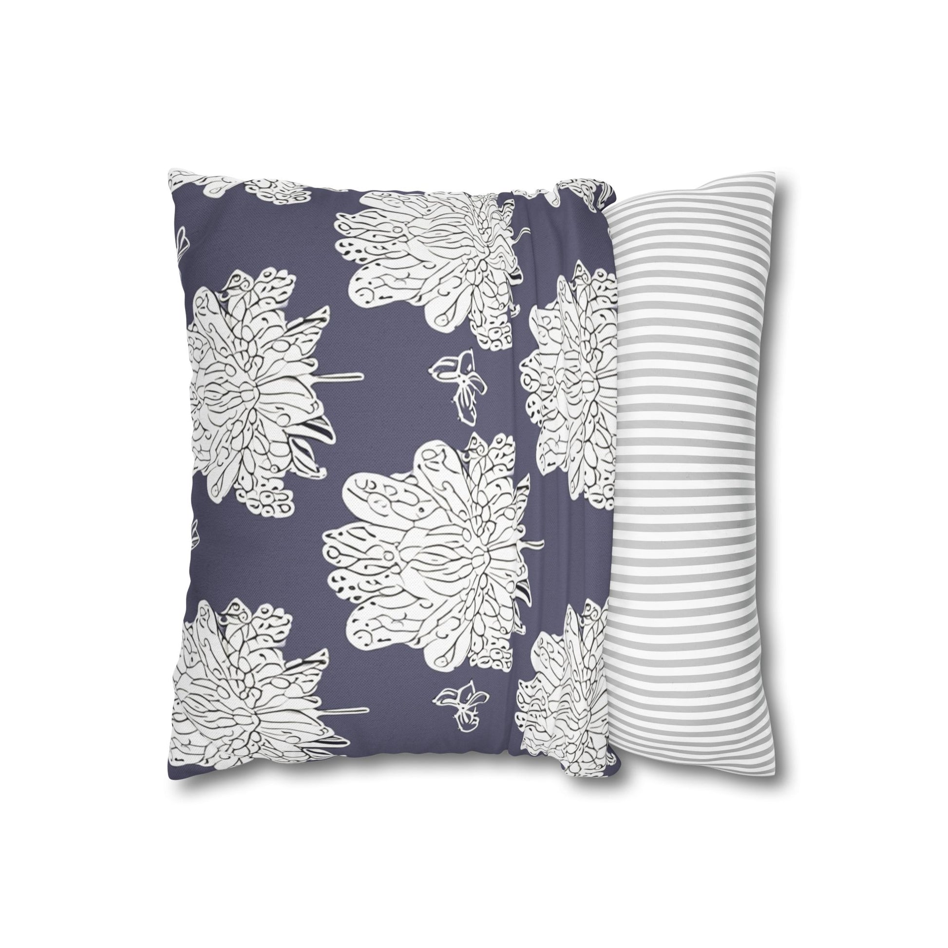 White Floral Butterflies Spun Polyester Square Pillowcase, 14" x 14"