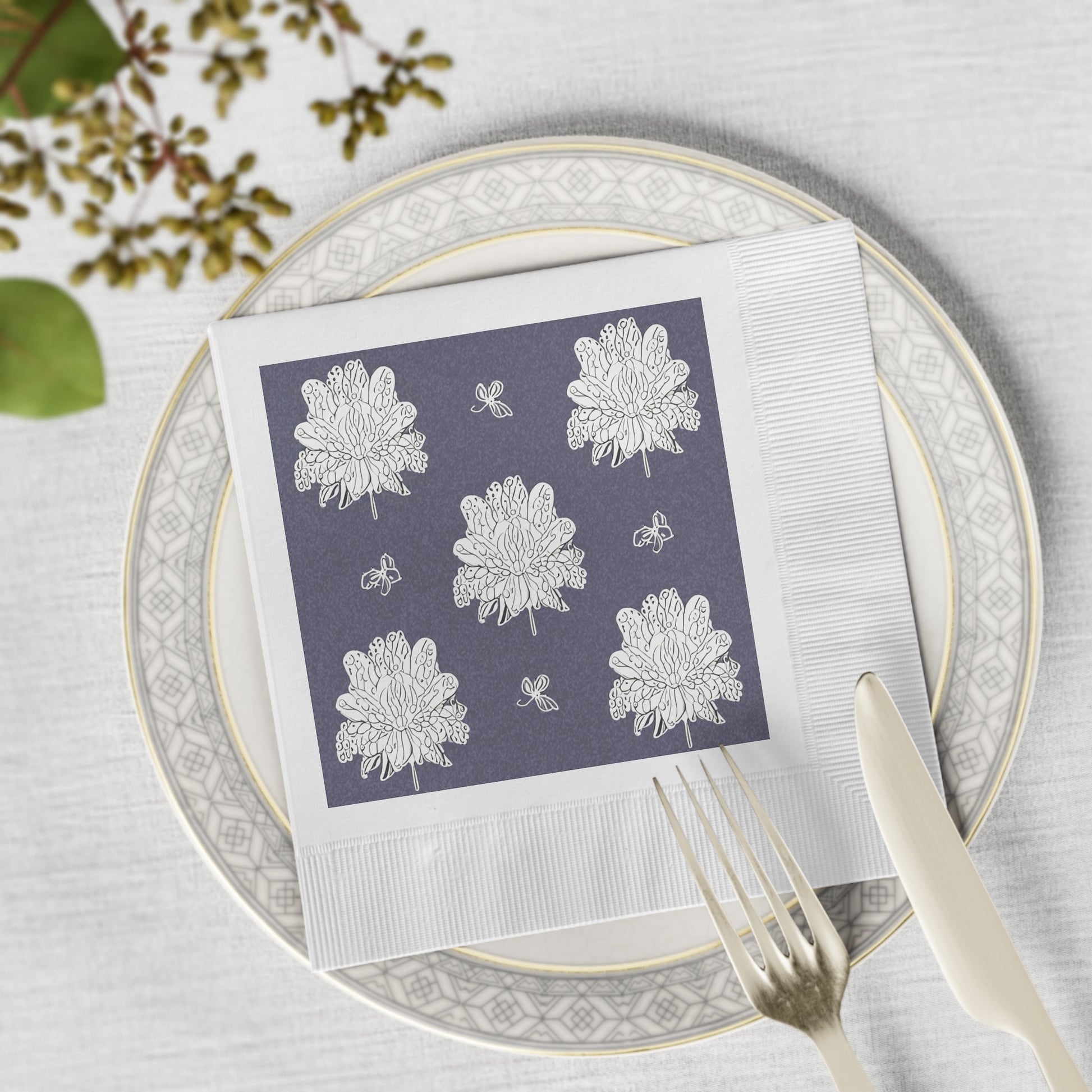 .: NB! The ink used in fulfillment may leave a faint shadow around the design's border, as well as specks on the napkin's edge