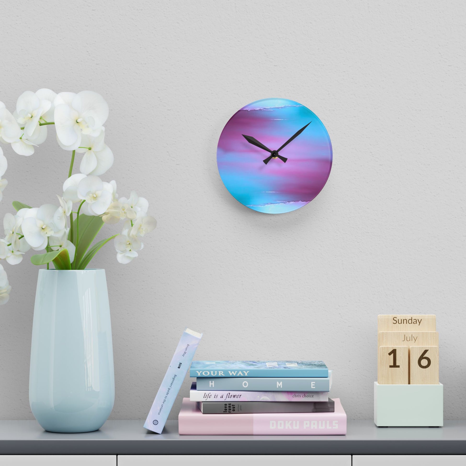 Wine Sea Blue Fog Acrylic Round Wall Clock, 8" x 8"